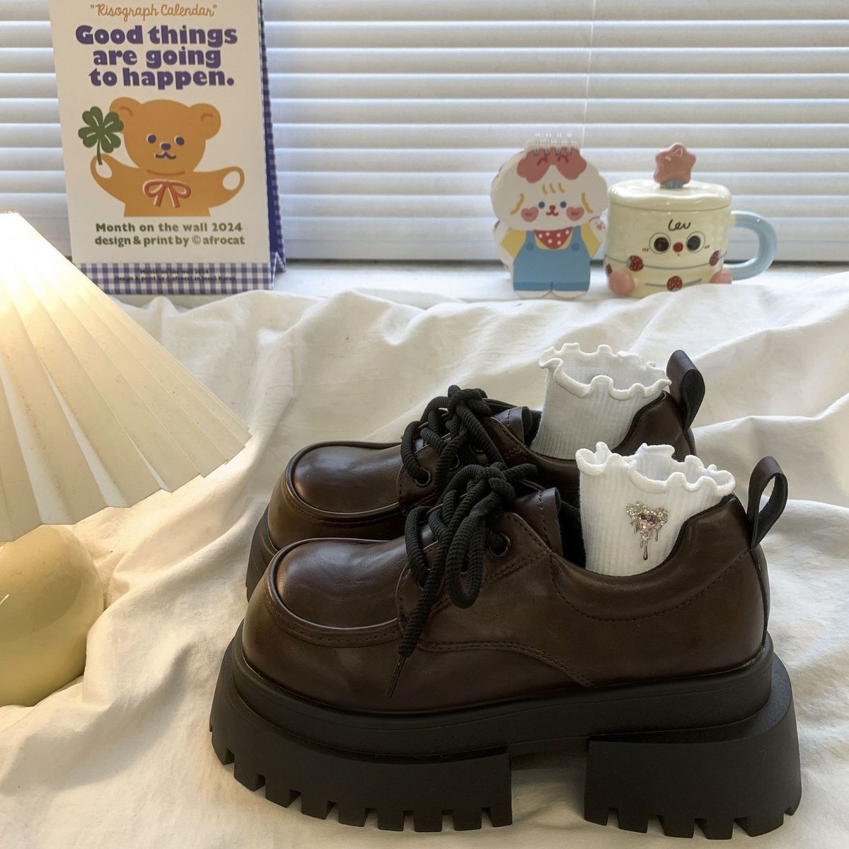 가을 새로운 스타일 플랫폼 두꺼운 바닥 유행 높이 증가 유럽과 미국 스타일 레이스 업 싱글 레이어 신발 영국 스타일 레트로 조커 작은 가죽 신발
