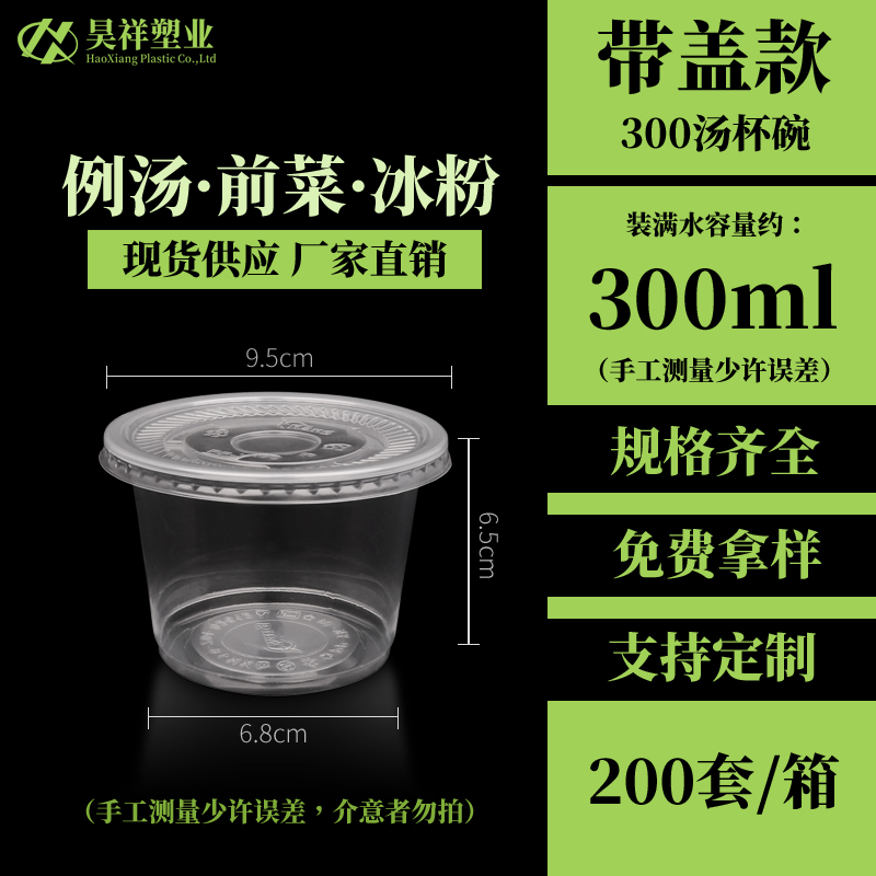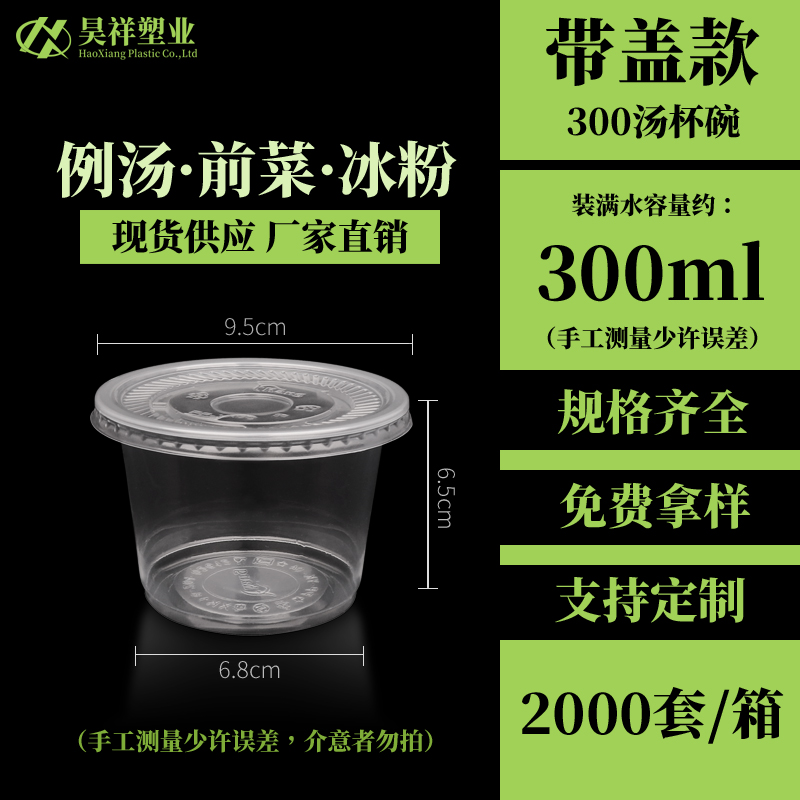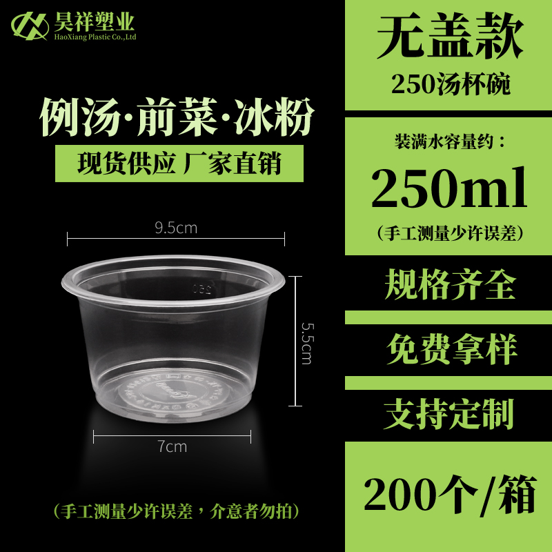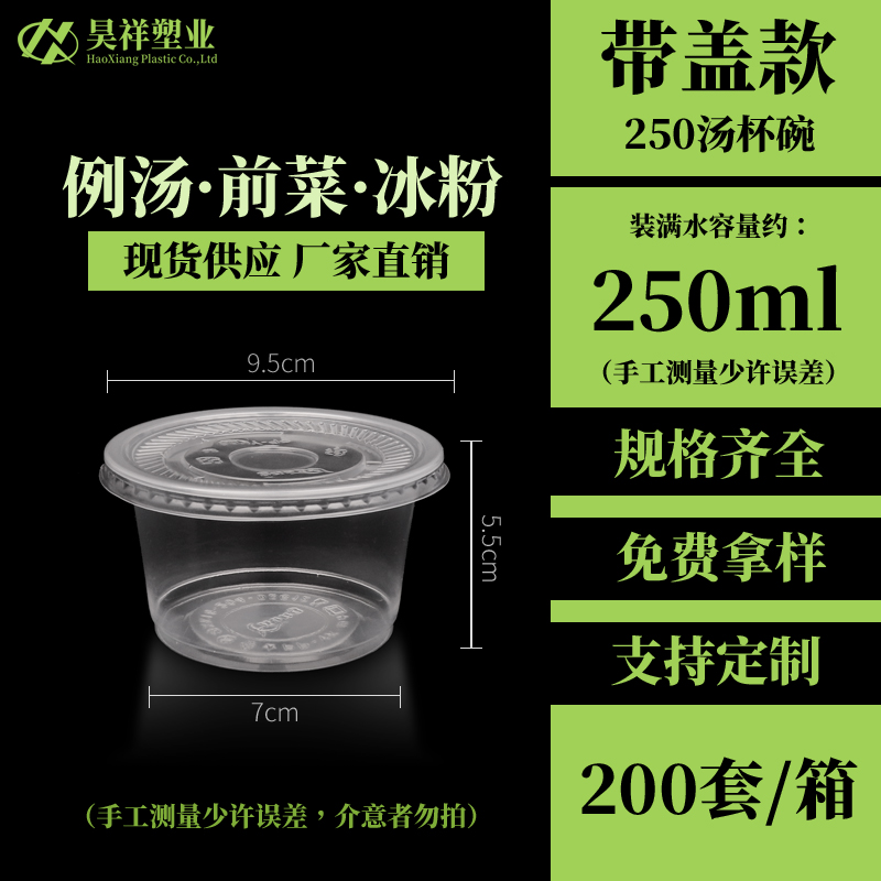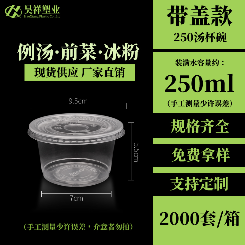 일회용 작은 그릇 수프 컵 국수 포장 얼음 분말 테이크 아웃 스낵 상자 뚜껑 투명 플라스틱 라운드 상업 250
