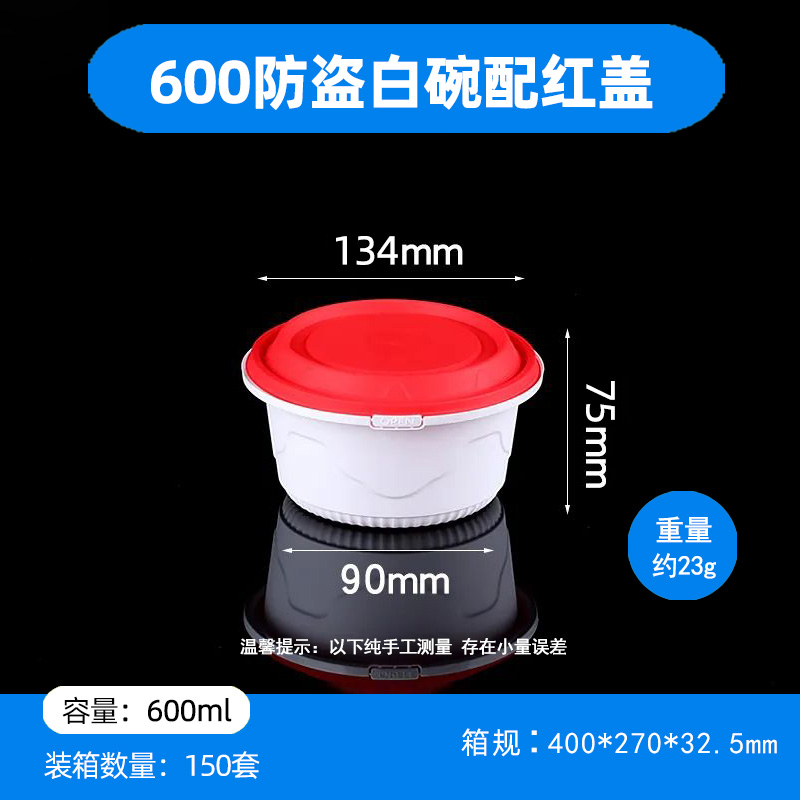 • 잠금장치 600 흰색 그릇 + 빨간색 뚜껑 150세트