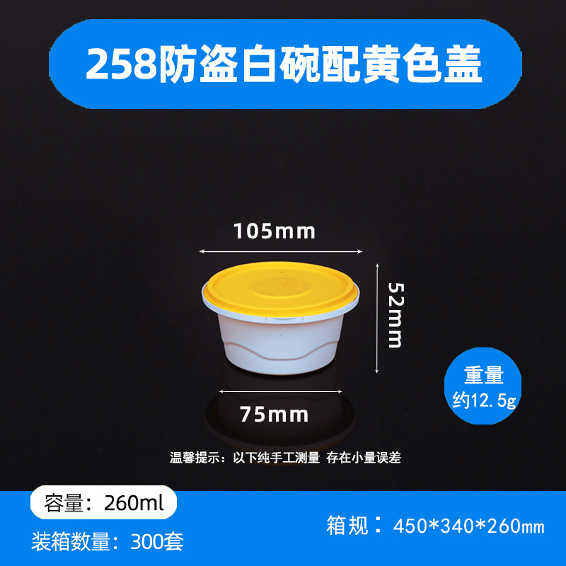 • 잠금 MX105-258 흰색 그릇 + 노란색 뚜껑 150 세트