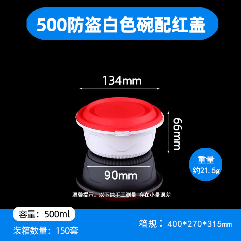 • 잠금장치 500 흰색 그릇 + 빨간색 뚜껑 150세트