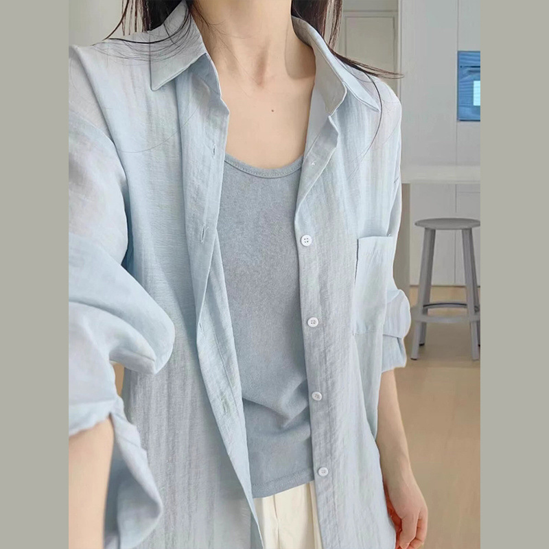 2025 새로운 도착 블루 썬 셔츠 코트 여성 여름 얇은 느슨한 외부 셔츠 카디건 탑
