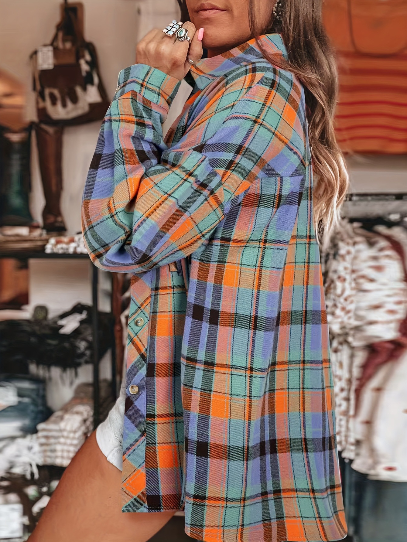 유럽과 미국의 국경 아마존 봄과 여름 격자 무늬 셔츠 여자 긴팔 느슨한 셔츠 재킷 한국식 올매치 탑
