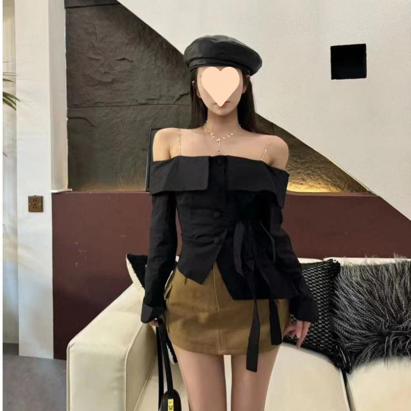봄과 여름 한국 스타일의 달콤한 레이디 스타일 작은 신선한 오프 숄더 탑 스트랩 스트라이프 체인 패션 기질 여성 의류