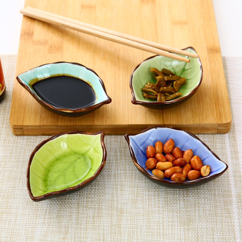 4 팩 모조 잎 세라믹 작은 접시 식기 식초 접시 간장 요리 조미료 접시 뼈 접시 스낵 접시