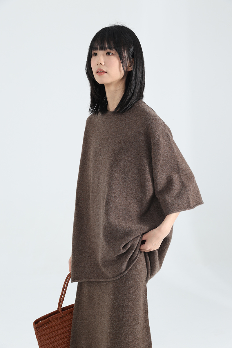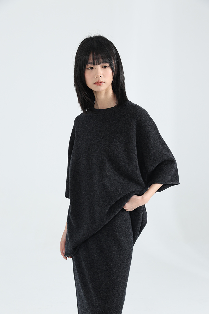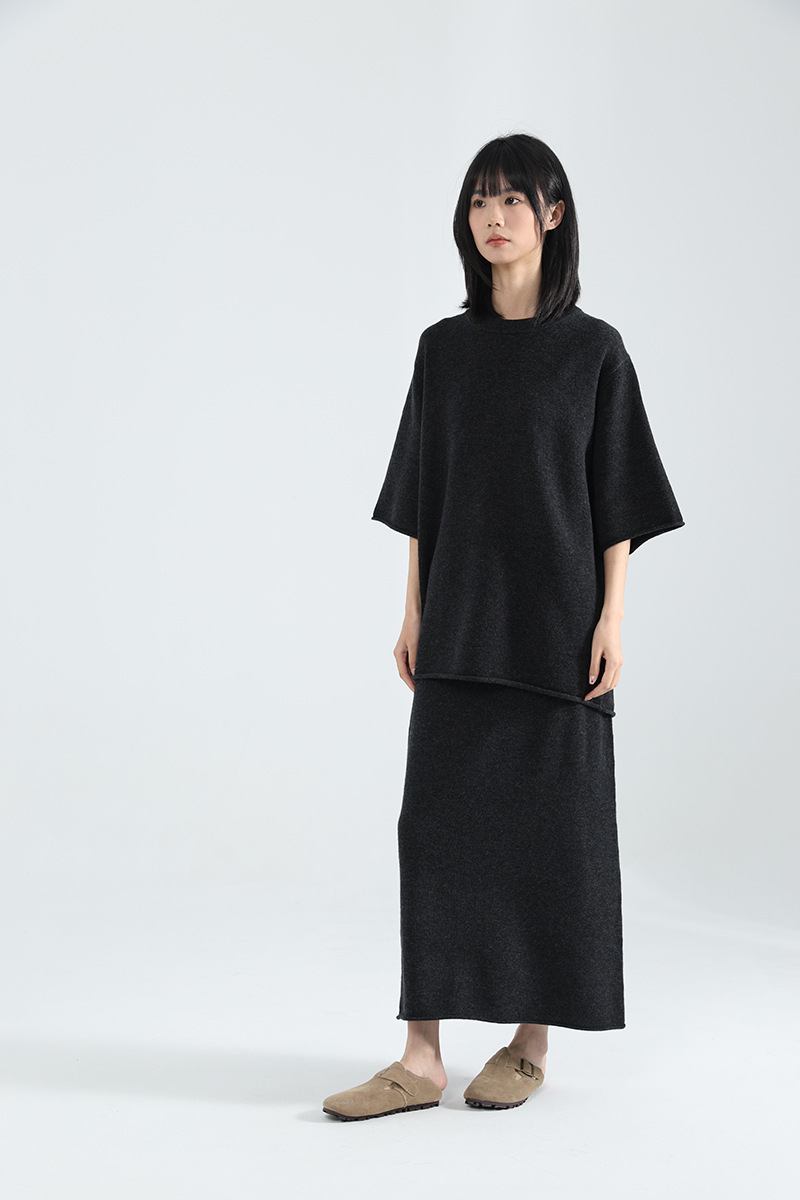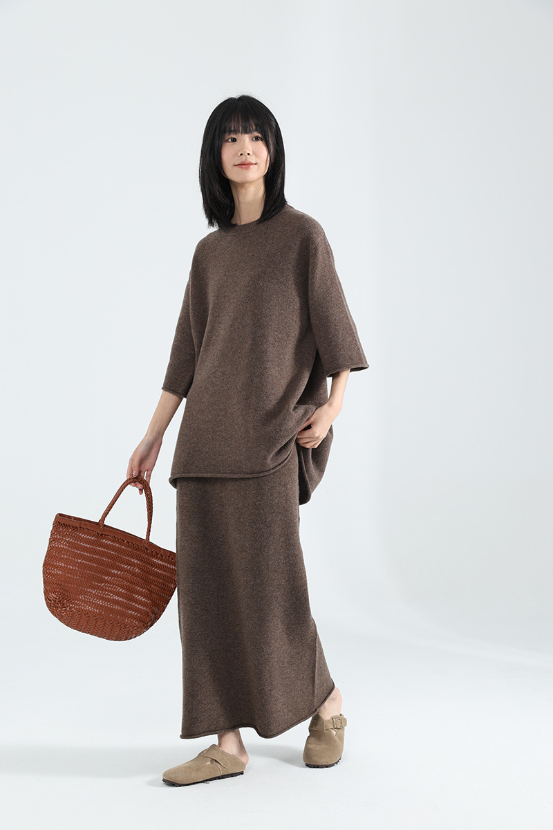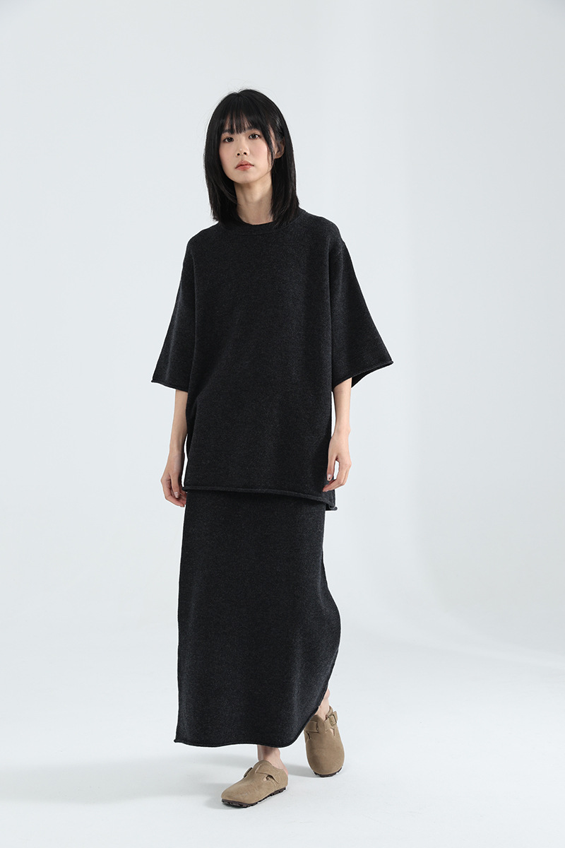 廓形针织T恤+半身裙型格打造