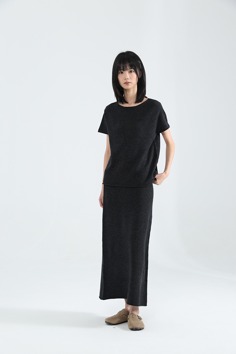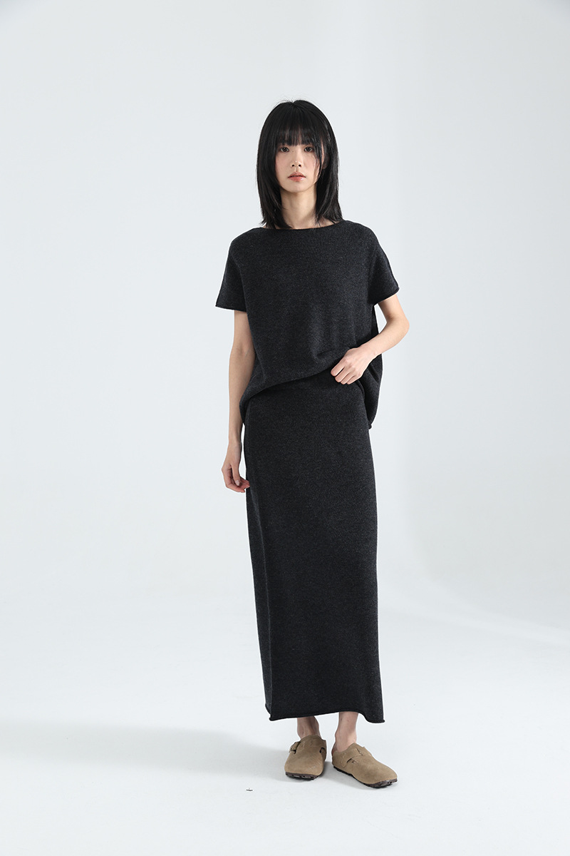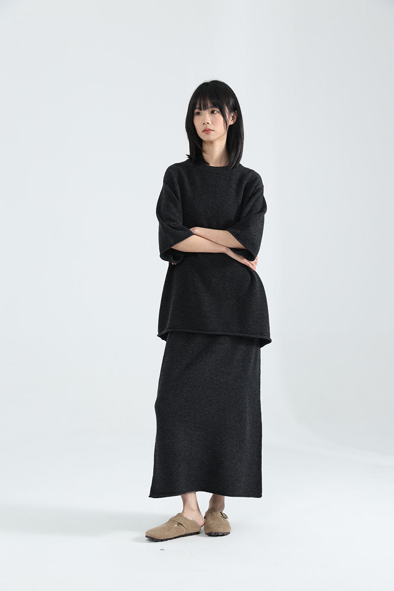 「柔飒MAXI针织直筒裙