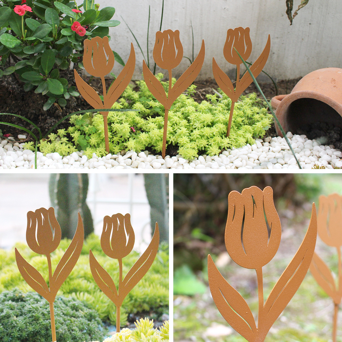 국경 간 새로운 금속 철 튤립 꽃 번들 세트 6 정원 안뜰 바닥 웨딩 장식