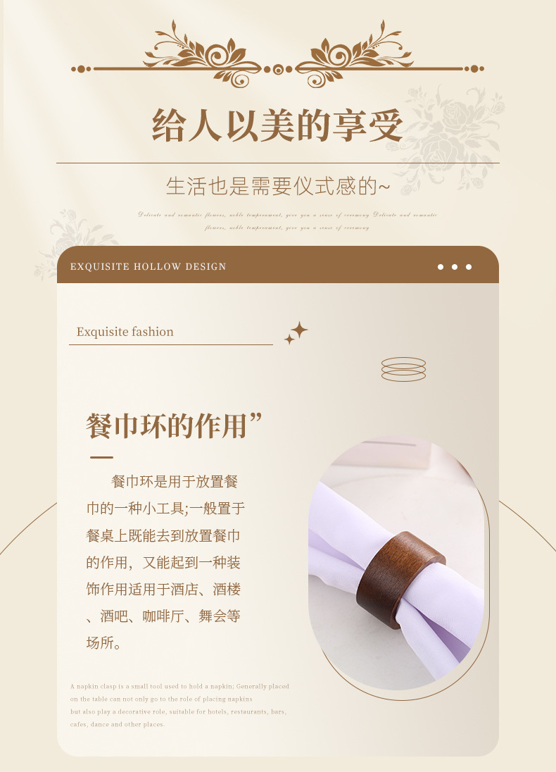 3 # 간단한 단색 나무 냅킨 반지 패션 조커 호텔 테이블 냅킨 버클 레스토랑 입 반지 재고 배치
