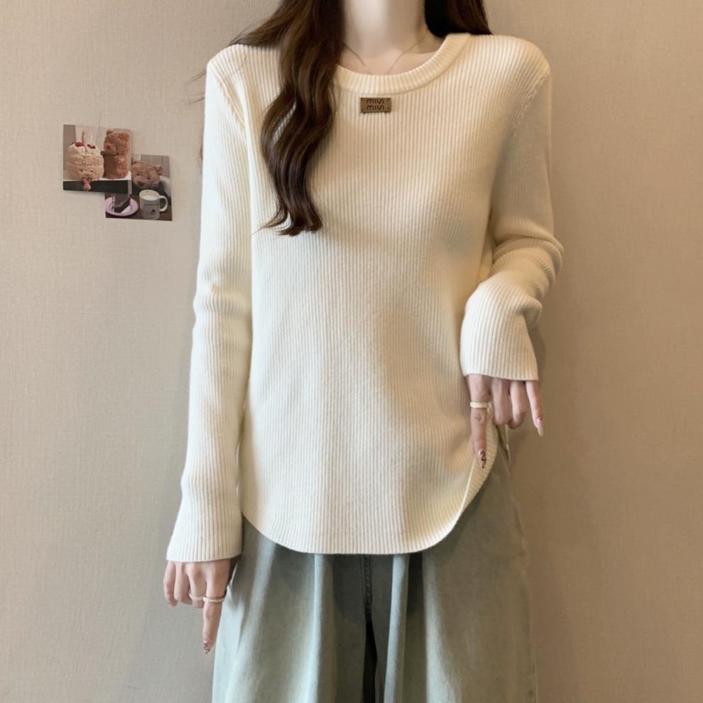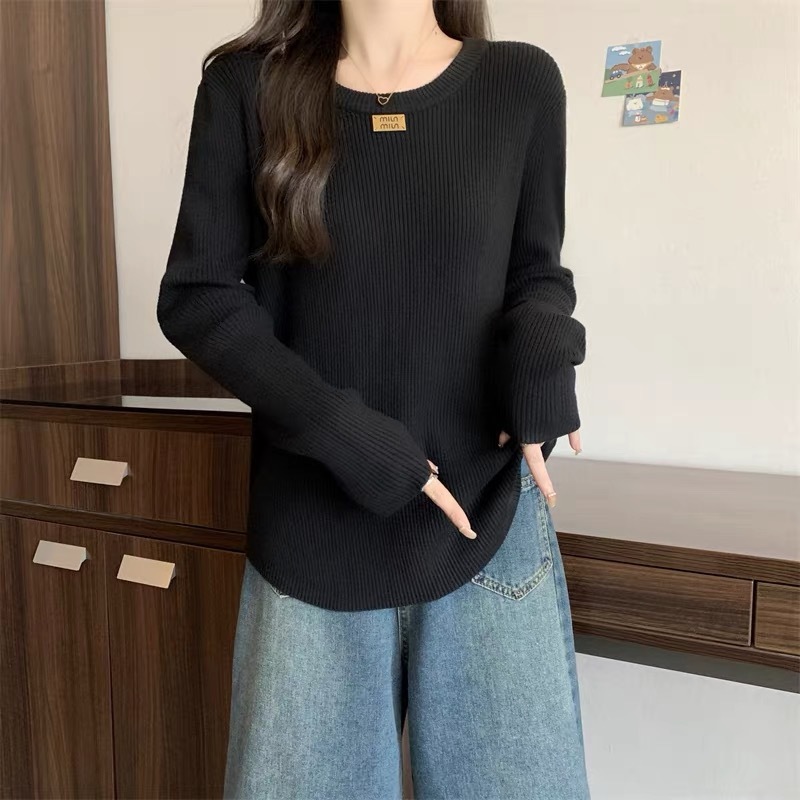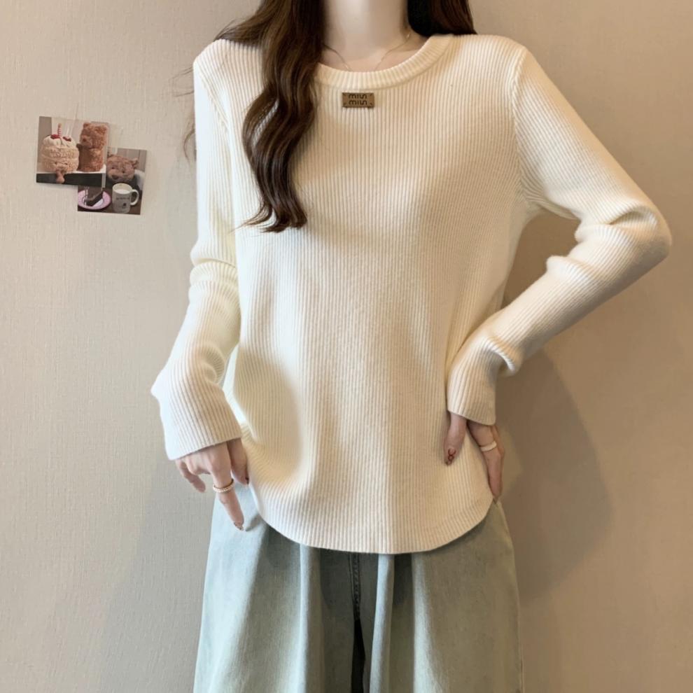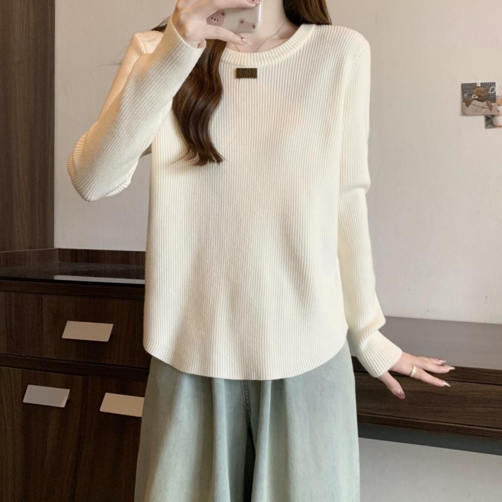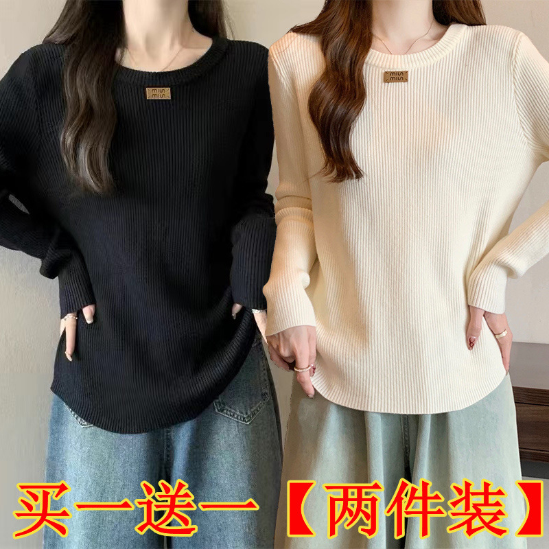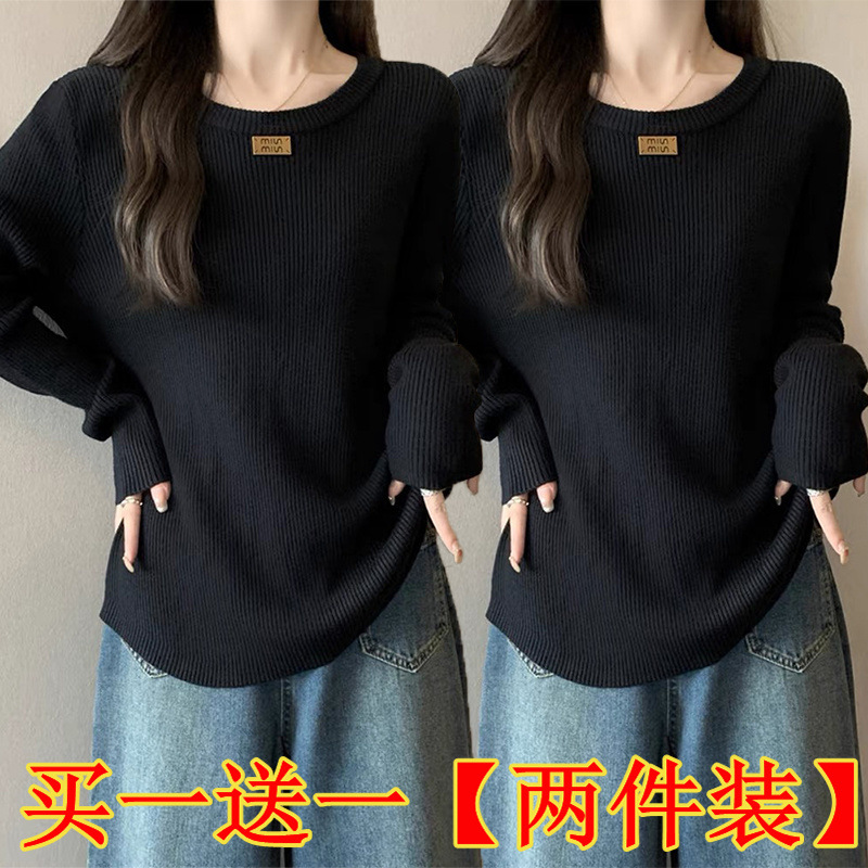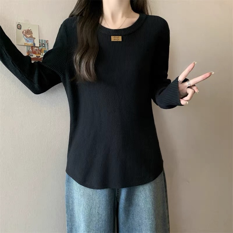 슬림베이스 셔츠 2025 새로운 여성의 가을과 겨울 둥근 목 배꼽을 덮는 통통녀 단일/두 조각스토어 가기