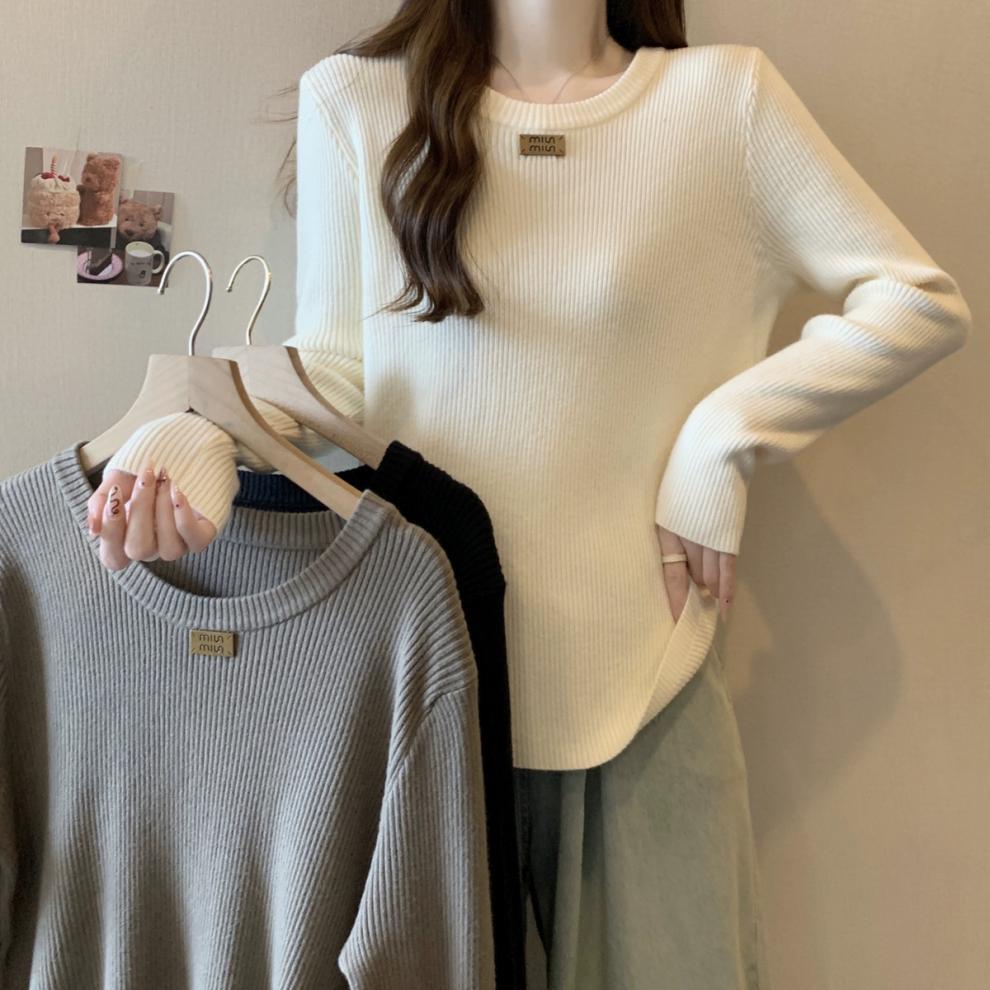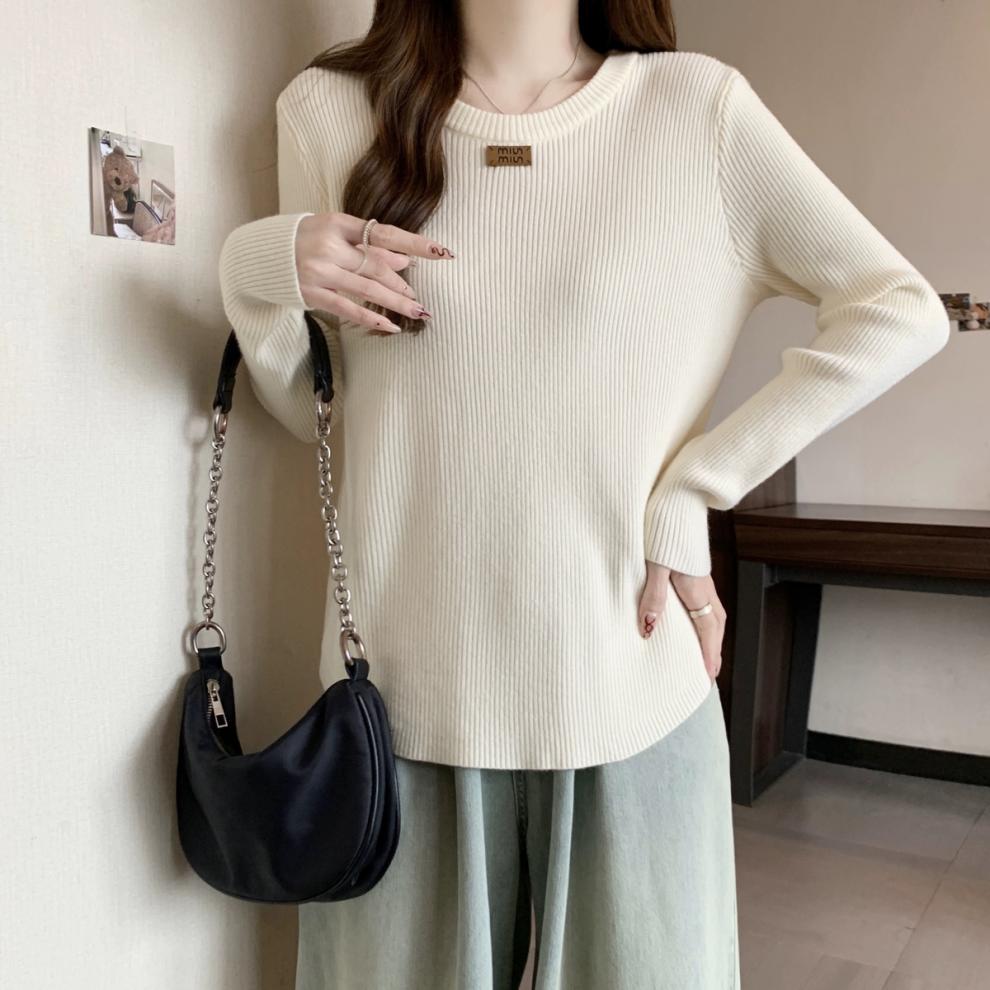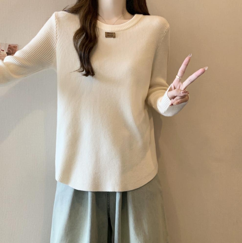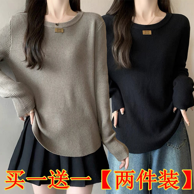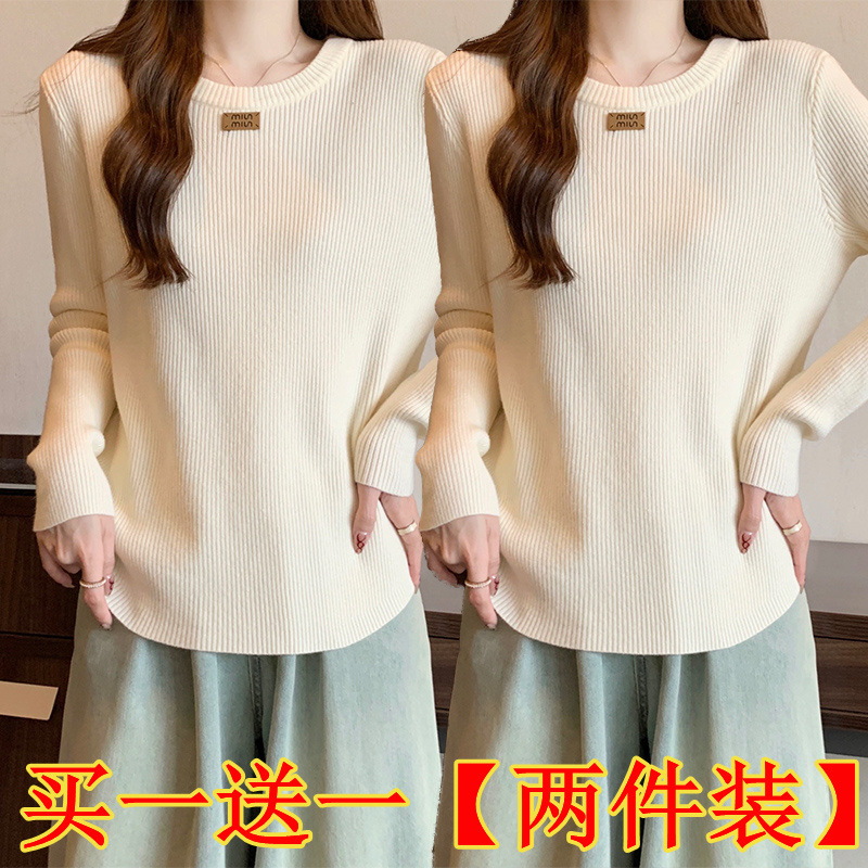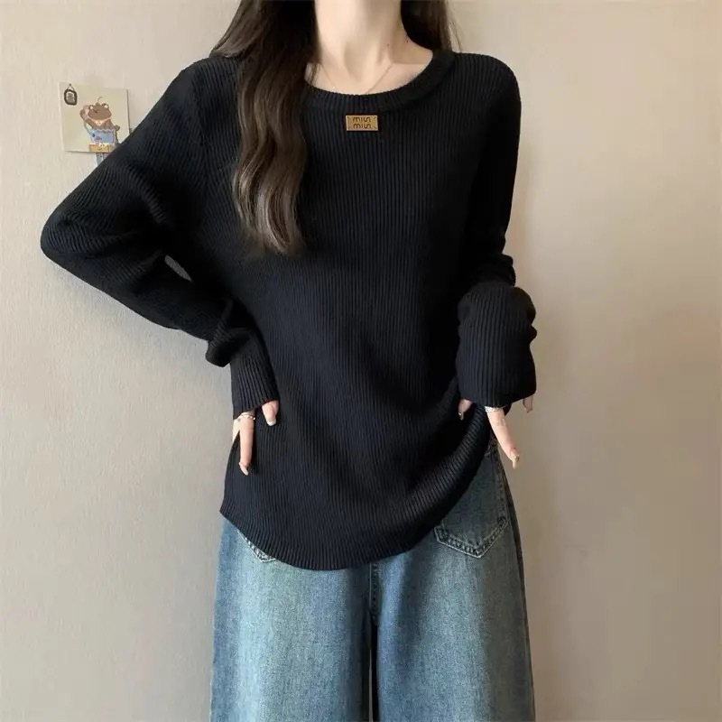 슬림베이스 셔츠 2025 새로운 여성의 가을과 겨울 둥근 목 배꼽을 덮는 통통녀 단일/두 조각스토어 가기