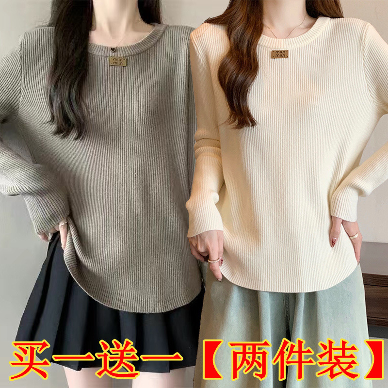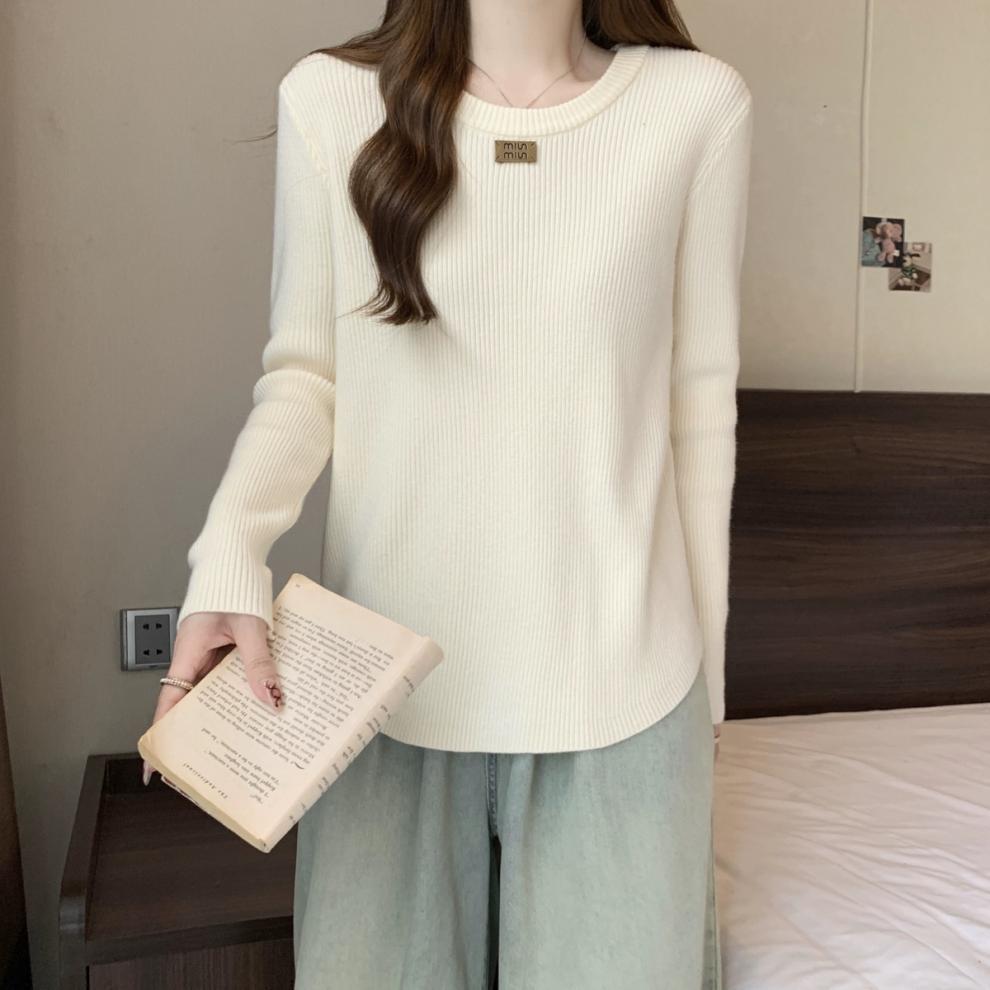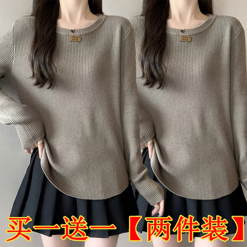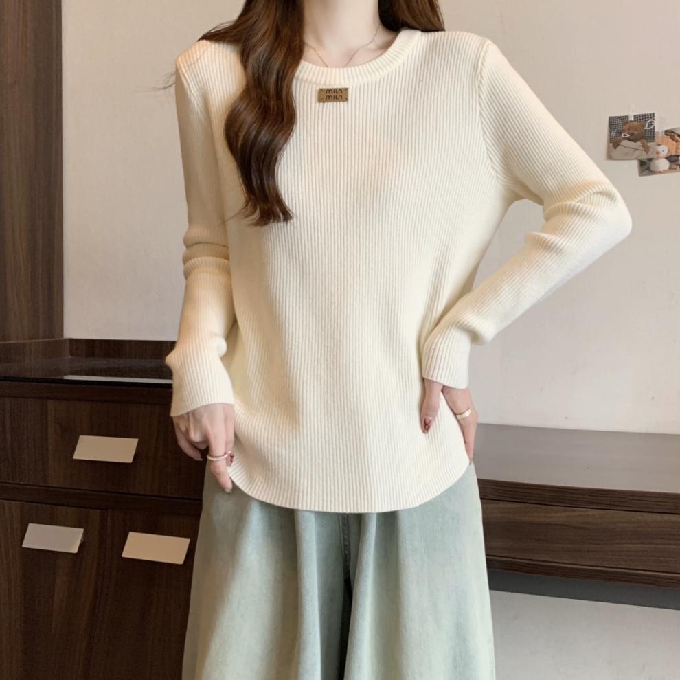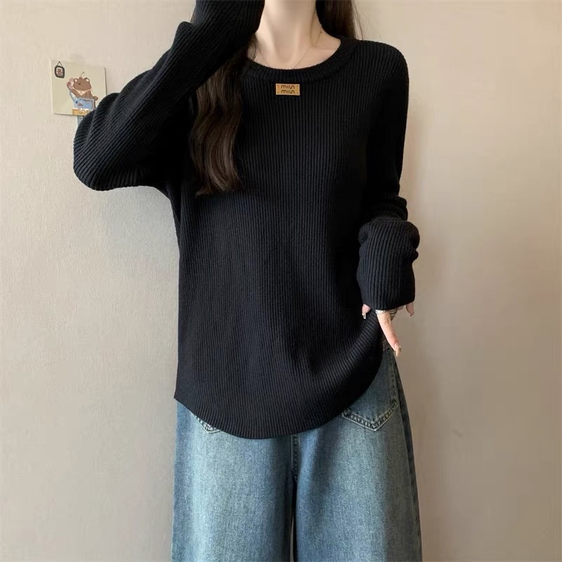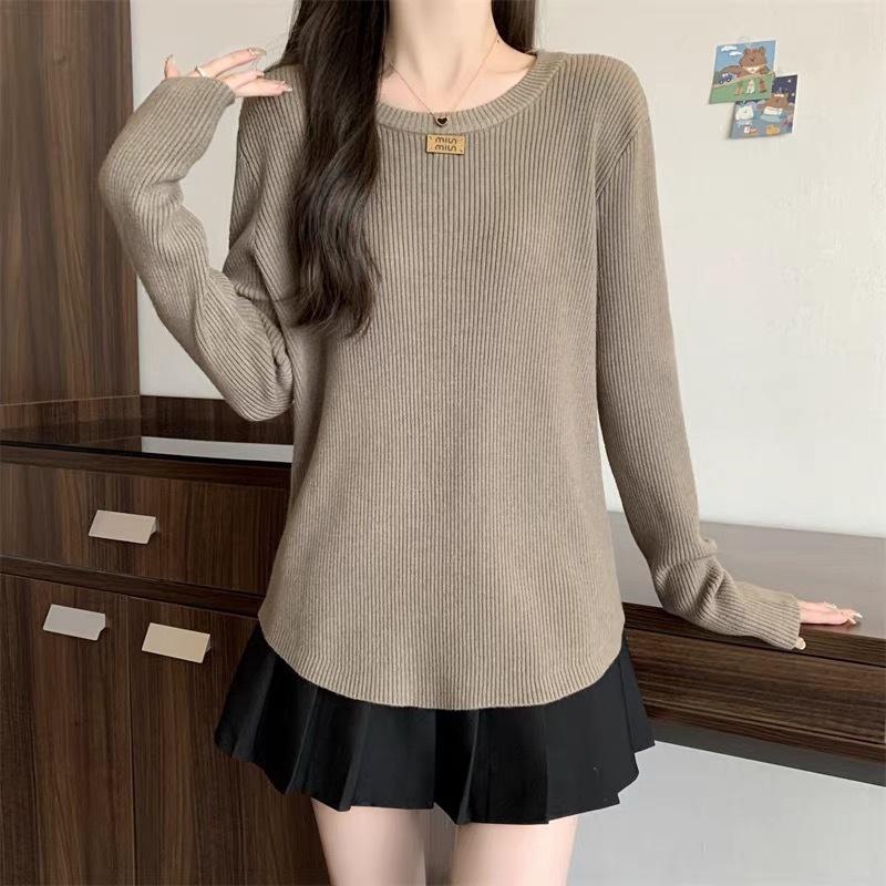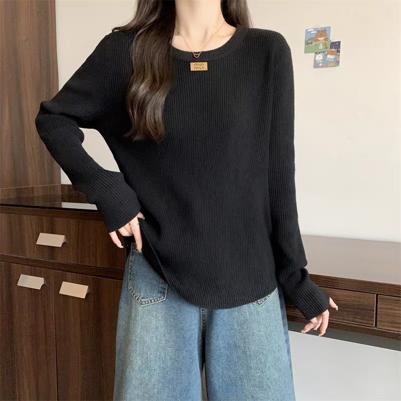 슬림베이스 셔츠 2025 새로운 여성의 가을과 겨울 둥근 목 배꼽을 덮는 통통녀 단일/두 조각스토어 가기