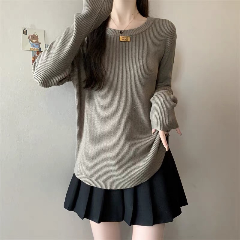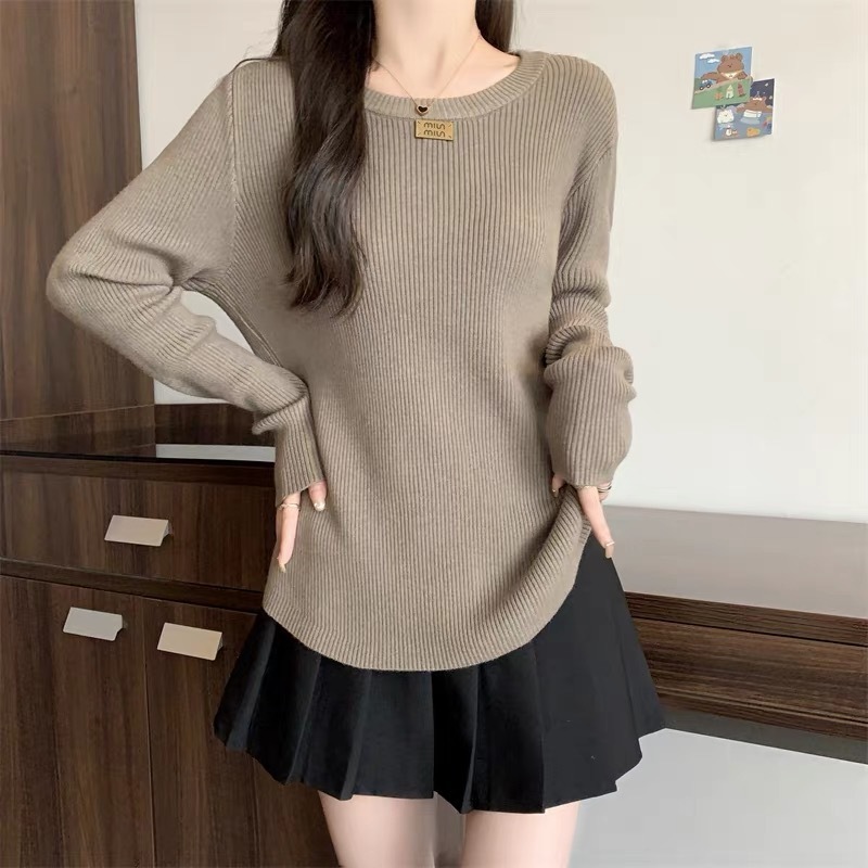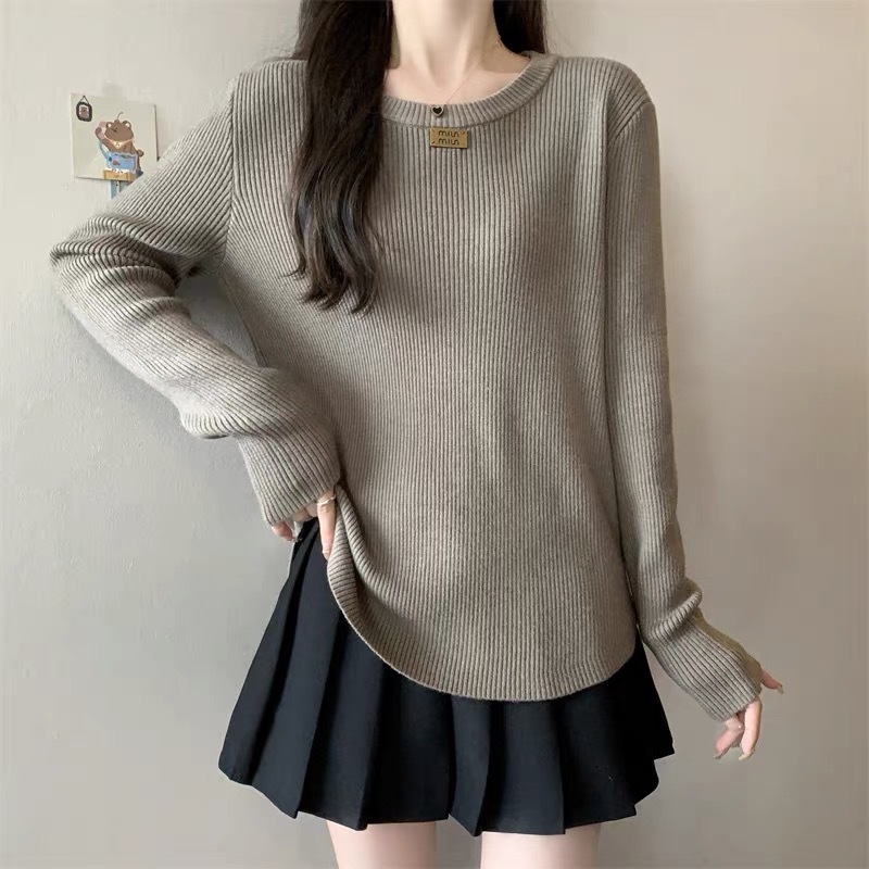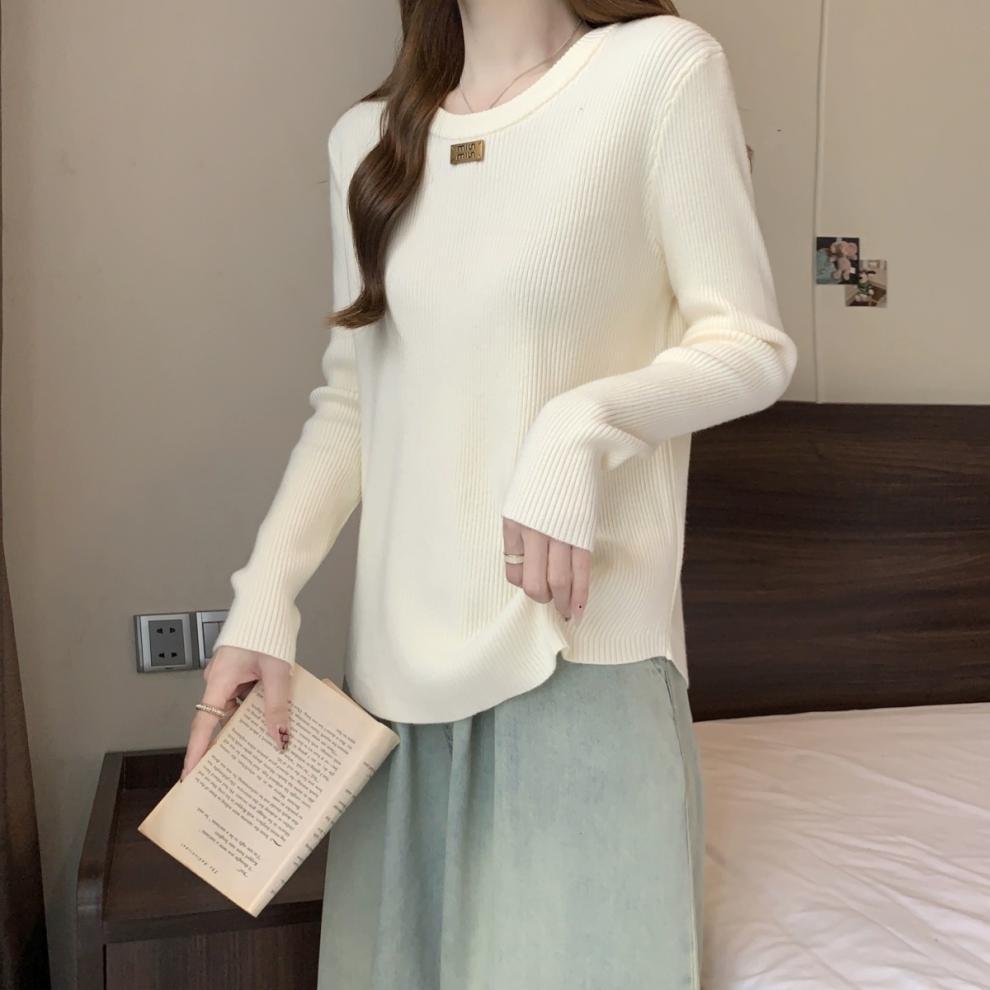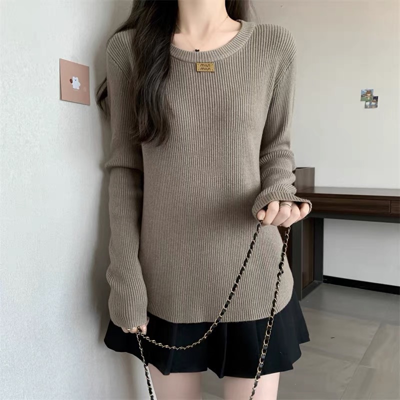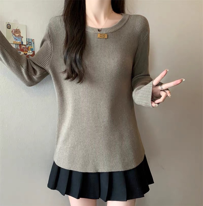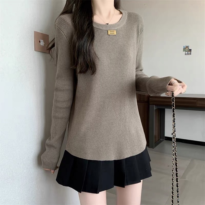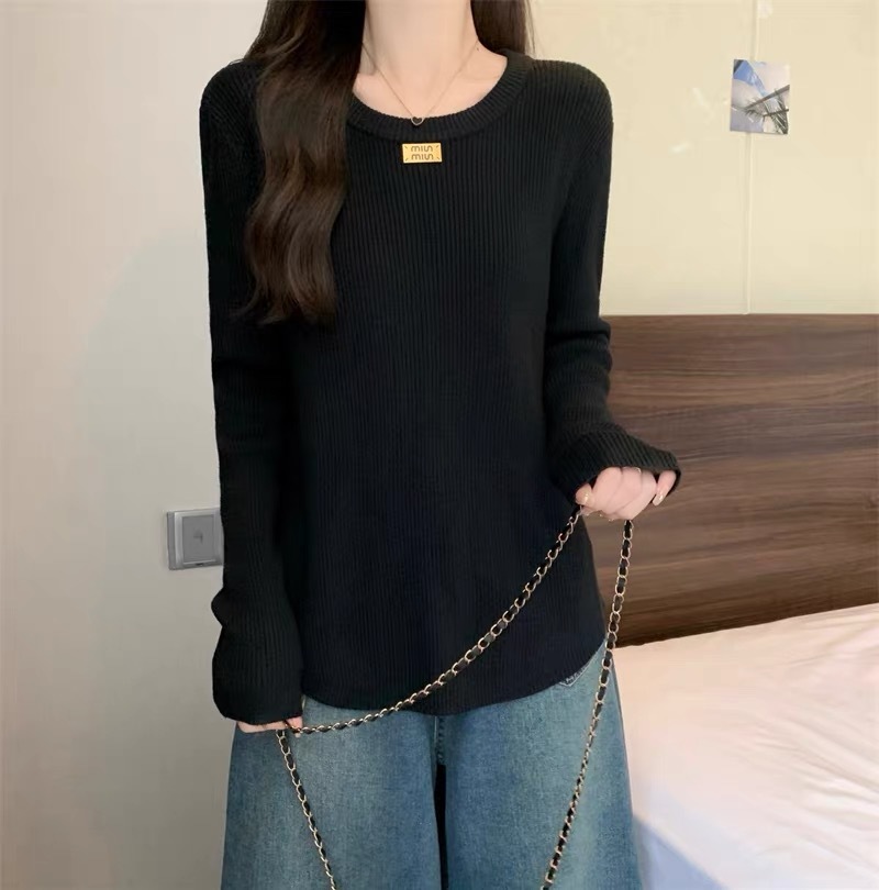 슬림베이스 셔츠 2025 새로운 여성의 가을과 겨울 둥근 목 배꼽을 덮는 통통녀 단일/두 조각스토어 가기