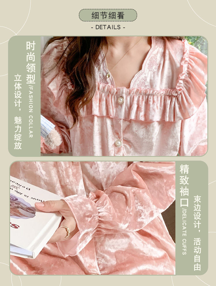 플러스 사이즈 200 진 슬림 파자마 한국 골드 다이아몬드 벨벳 달콤한 공주 스타일 투피스 세트 홈 옷을 입을 수 있습니다스토어 가기
