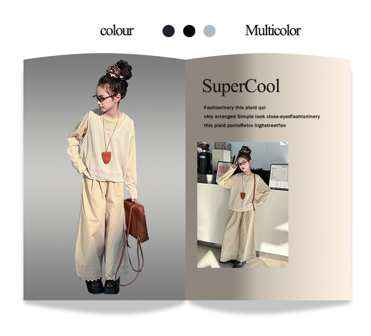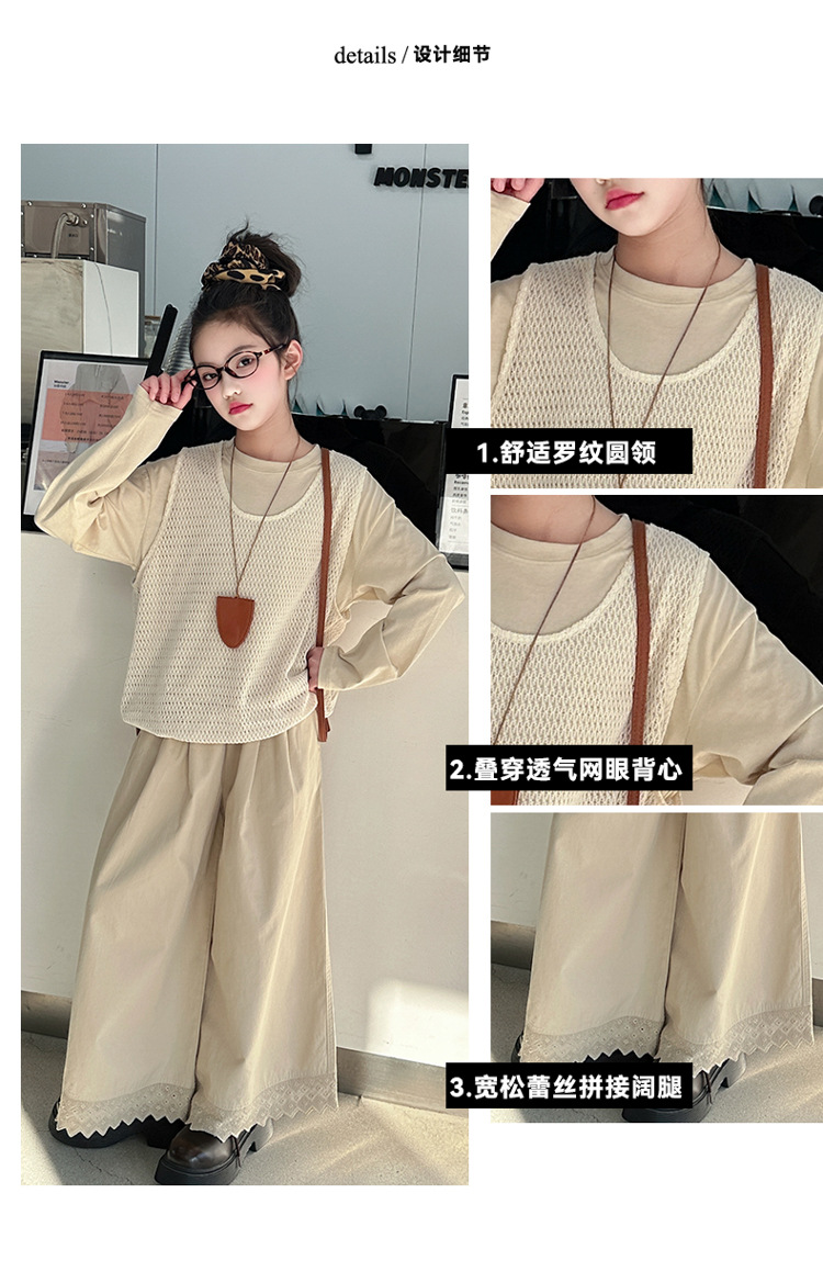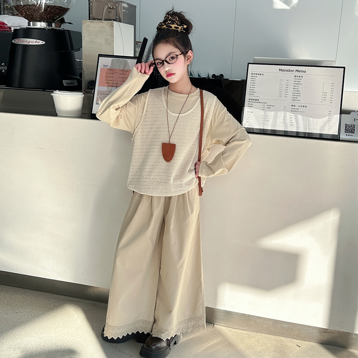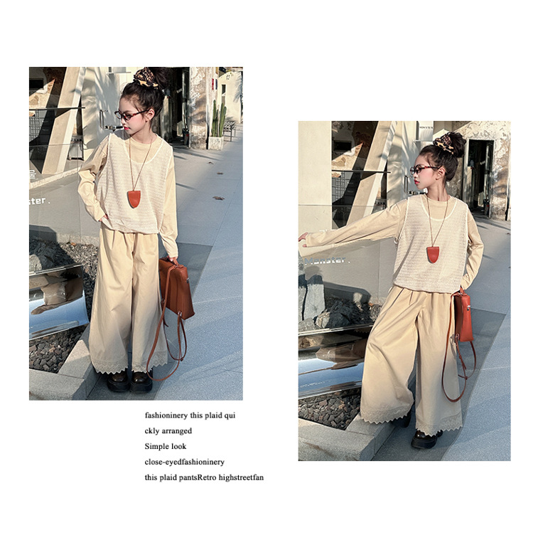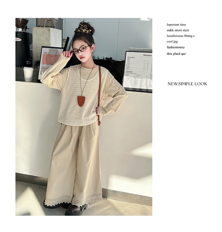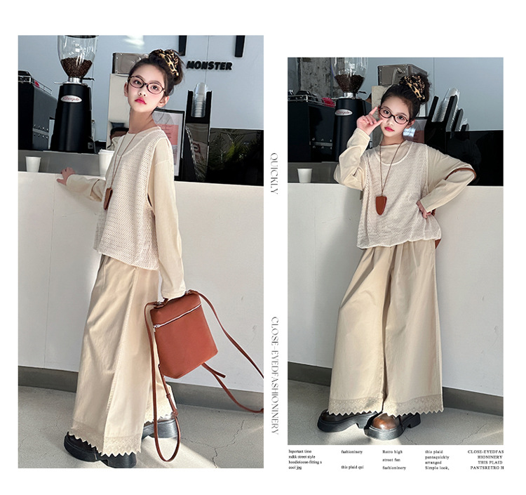 소녀 세트 봄 2025 새로운 중대형 어린이 넓은 다리 바지 봄과 가을 소녀 유행 두 조각 국경 아동복스토어 가기