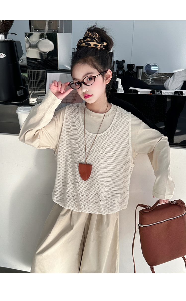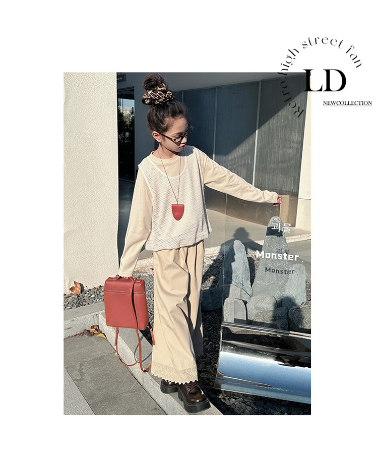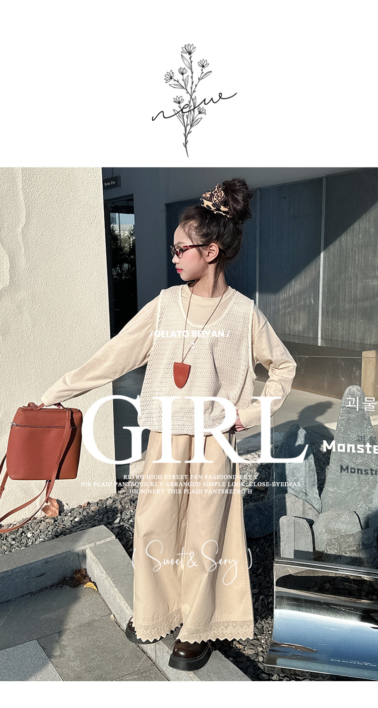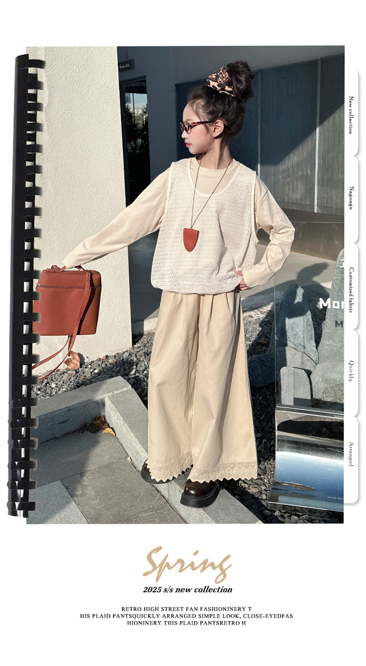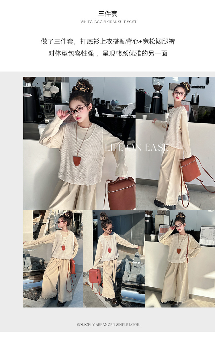소녀 세트 봄 2025 새로운 중대형 어린이 넓은 다리 바지 봄과 가을 소녀 유행 두 조각 국경 아동복스토어 가기