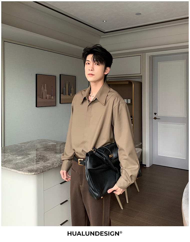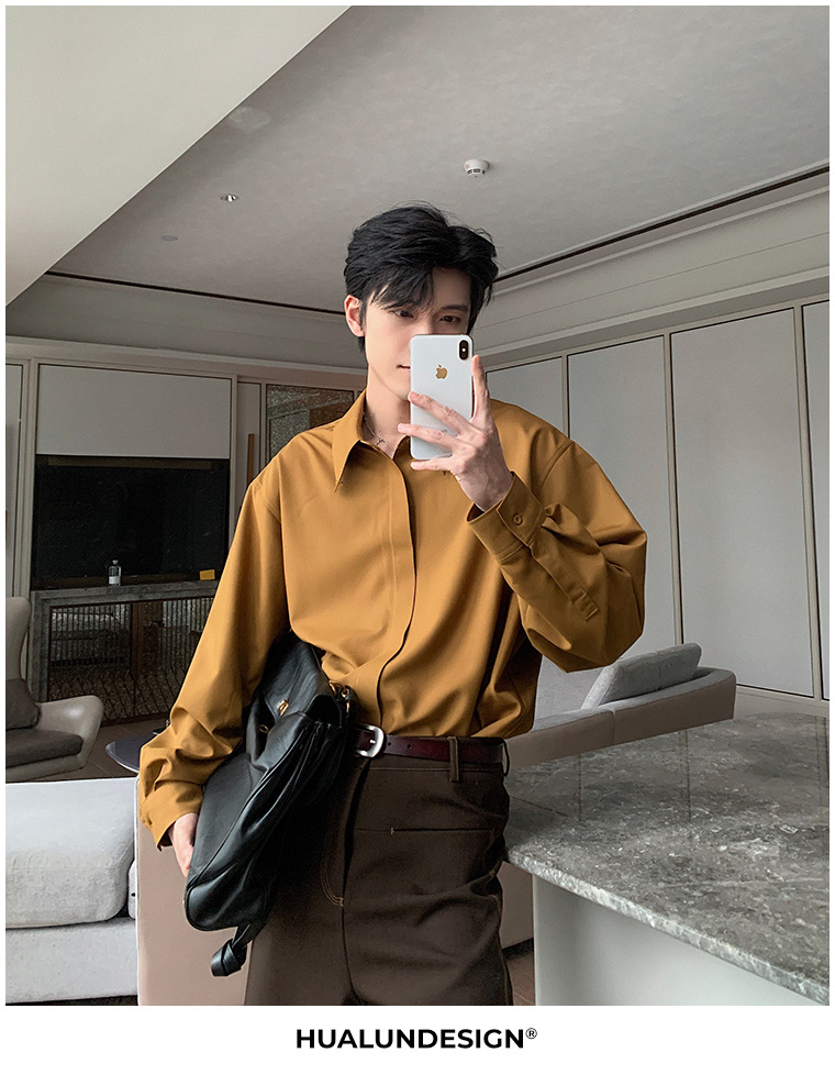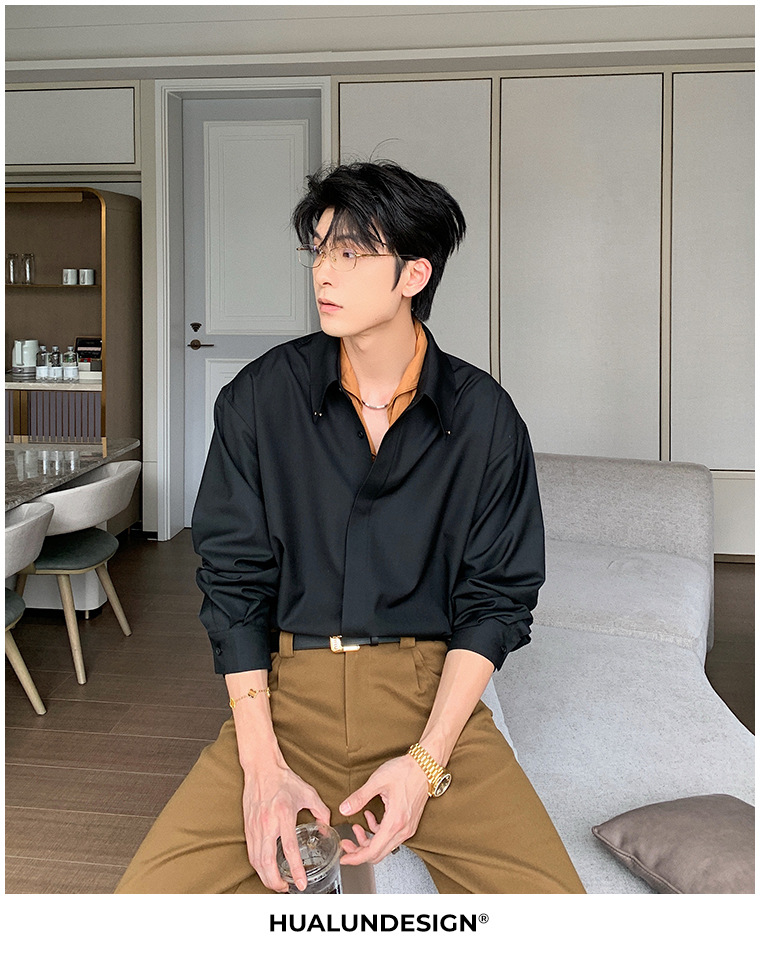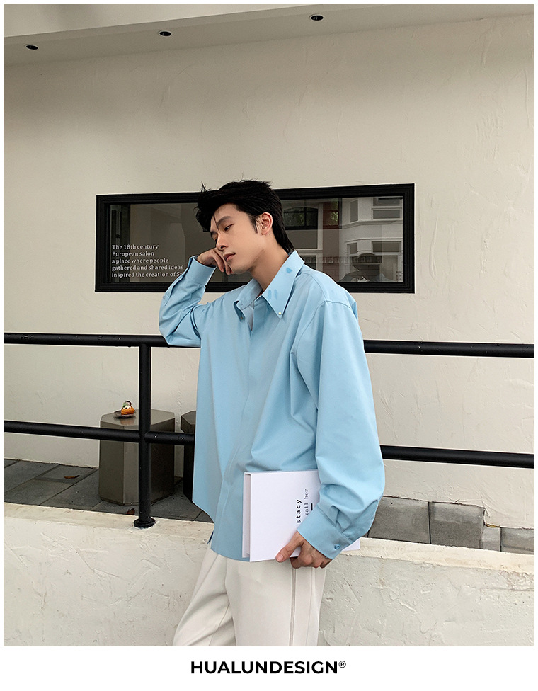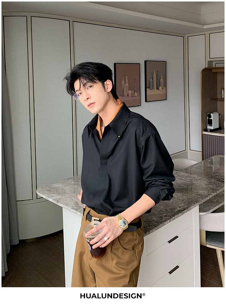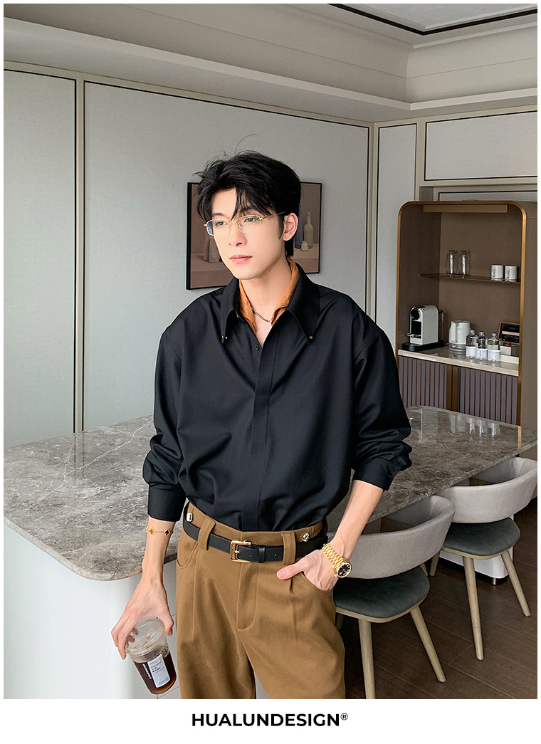 Hualun 안티 주름 셔츠 남자의 긴팔 하이 엔드 고급 고급 솔리드 컬러 내부 탑 클렌핏 비 다림질 셔츠스토어 가기