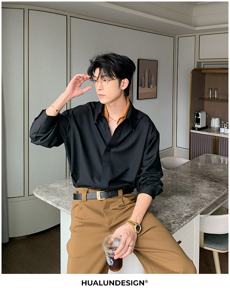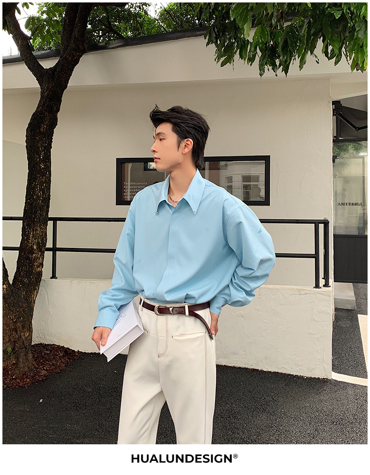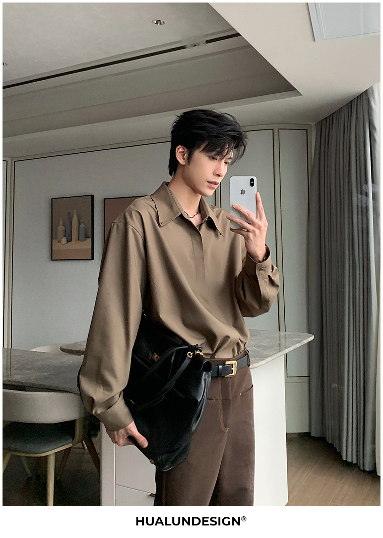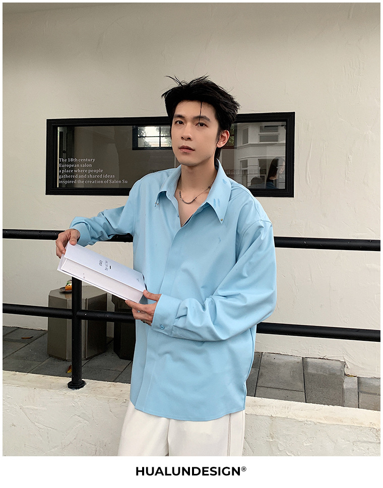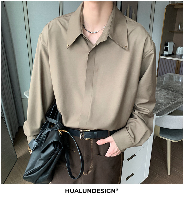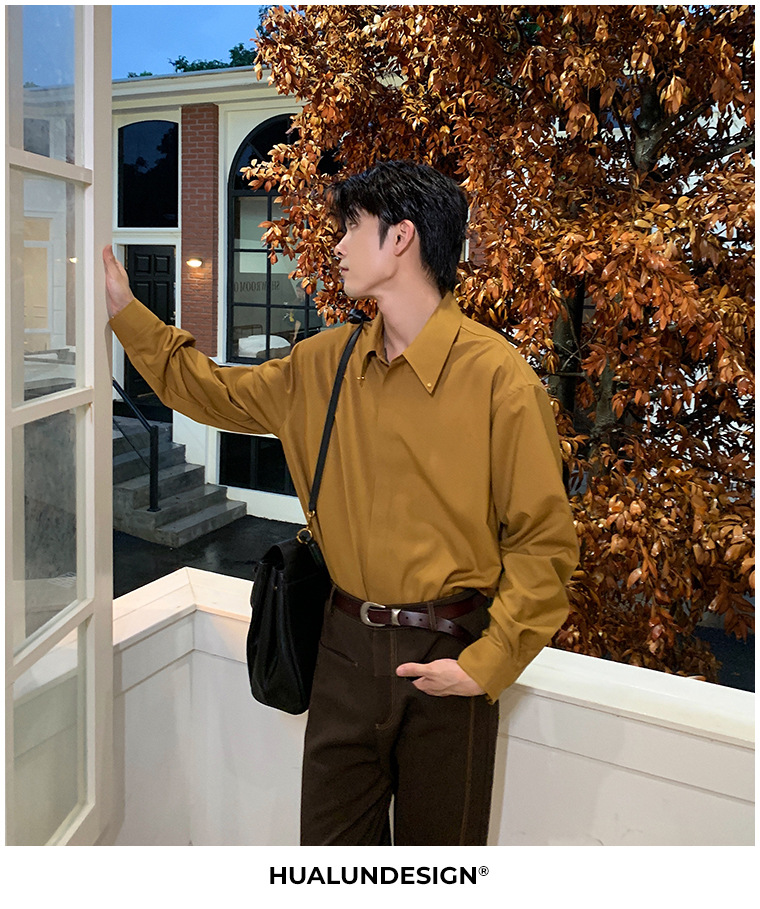 Hualun 안티 주름 셔츠 남자의 긴팔 하이 엔드 고급 고급 솔리드 컬러 내부 탑 클렌핏 비 다림질 셔츠스토어 가기