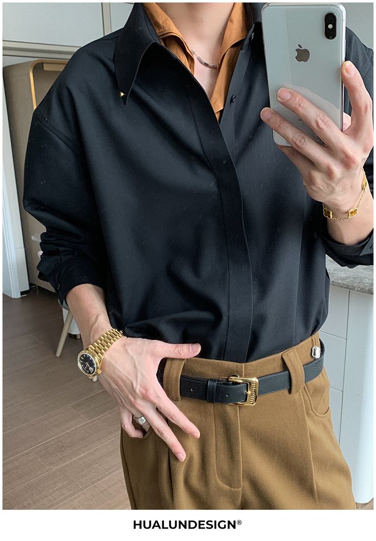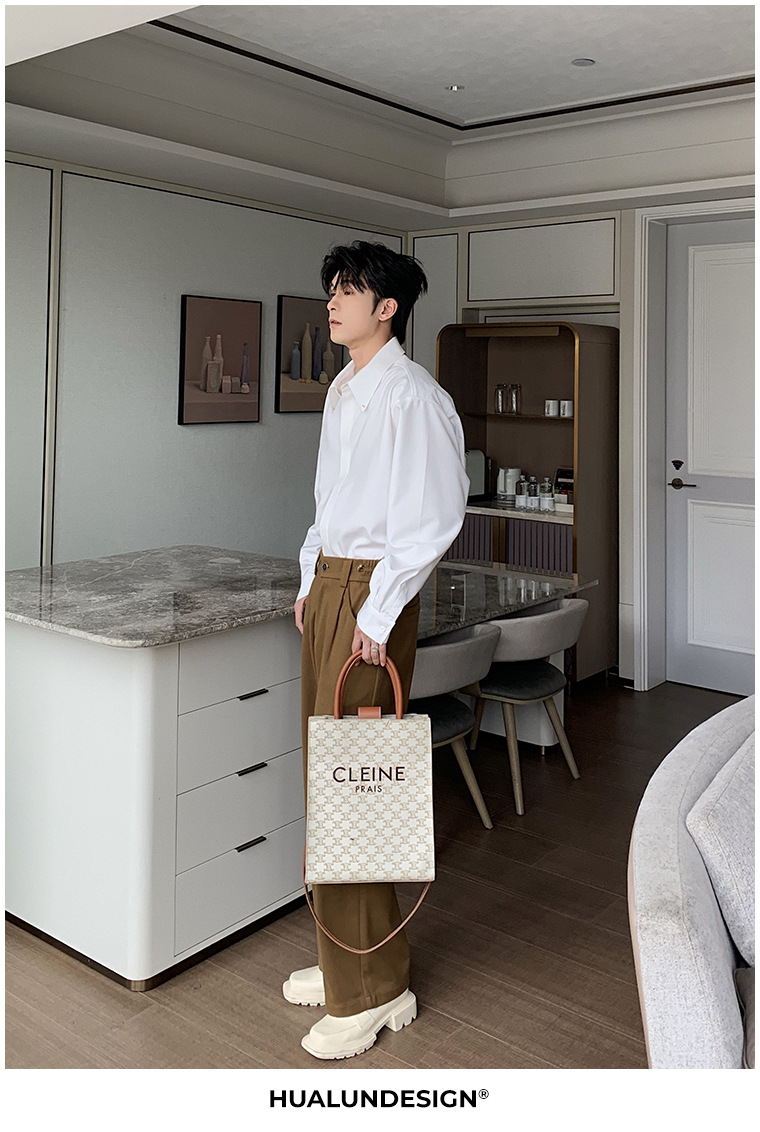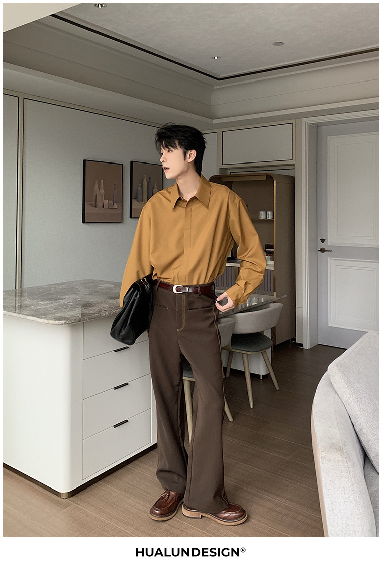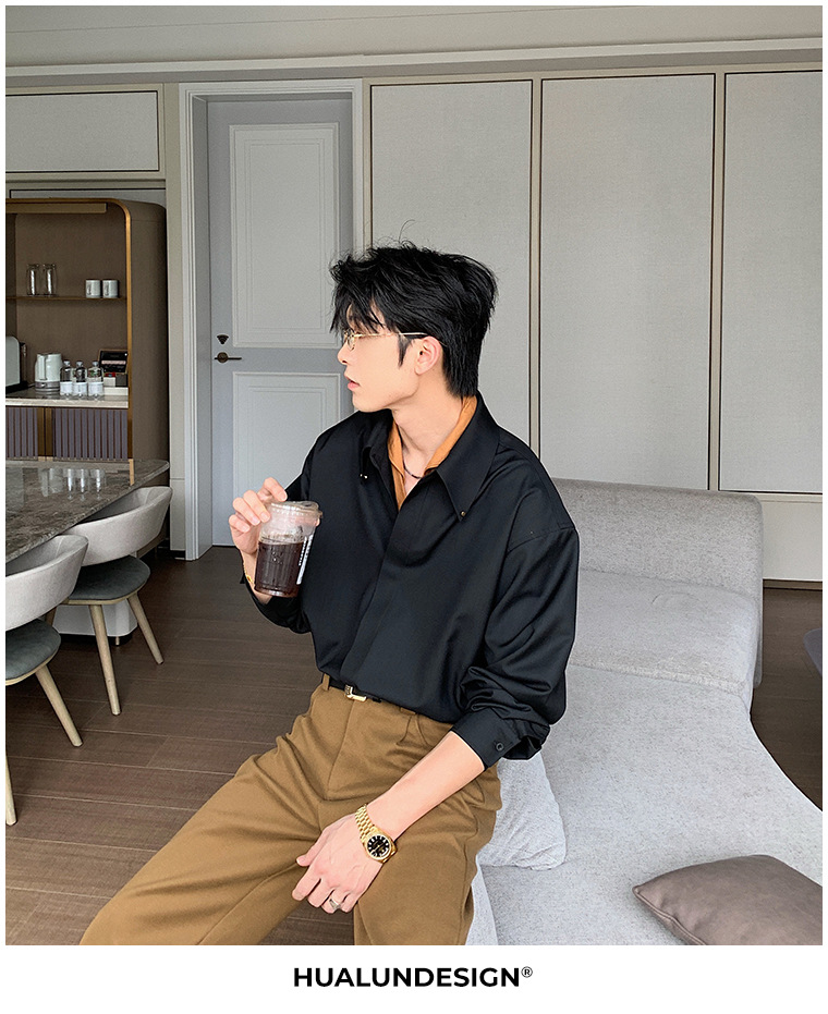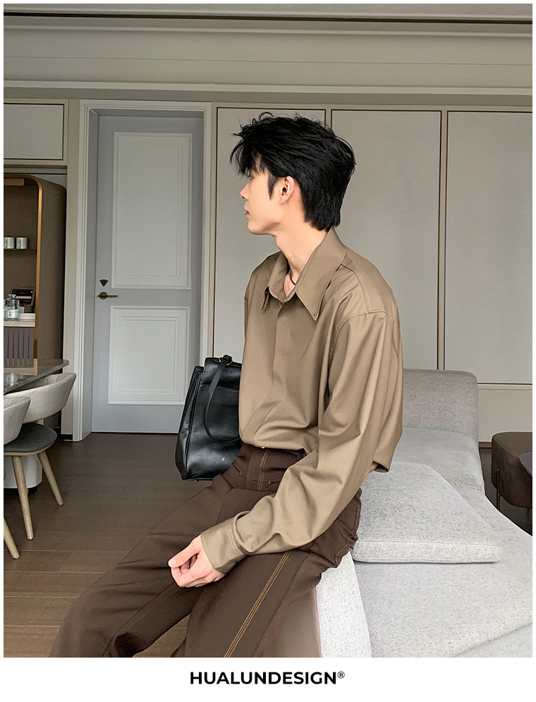 Hualun 안티 주름 셔츠 남자의 긴팔 하이 엔드 고급 고급 솔리드 컬러 내부 탑 클렌핏 비 다림질 셔츠스토어 가기