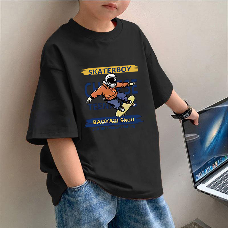 2445 # 아동복 소년 티셔츠 짧은 소매 면화 어린이 여름 자켓 소년 중 큰 어린이 쿨 반소매스토어 가기