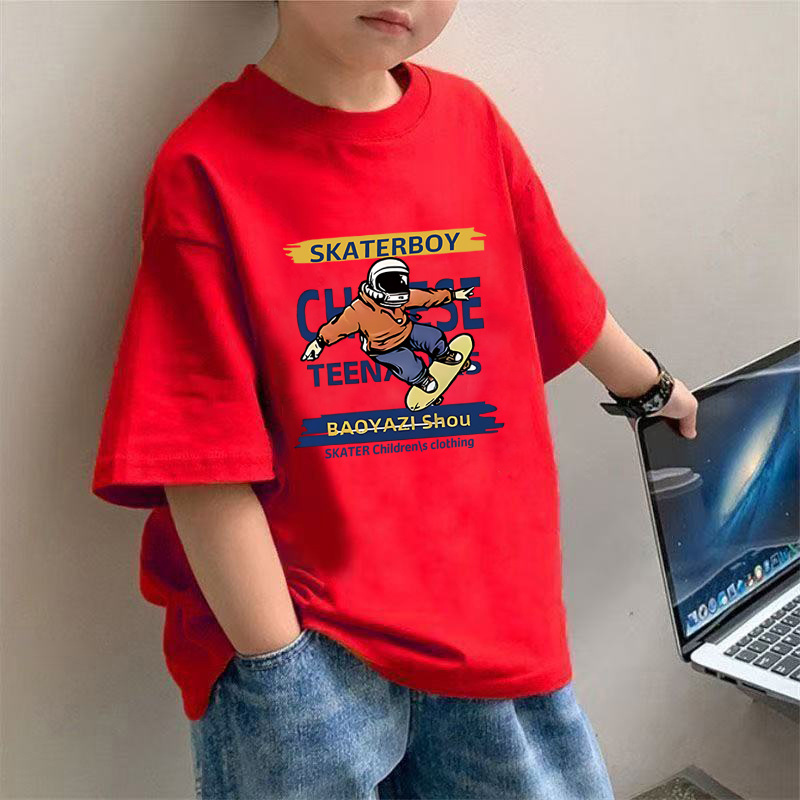 2445 # 아동복 소년 티셔츠 짧은 소매 면화 어린이 여름 자켓 소년 중 큰 어린이 쿨 반소매