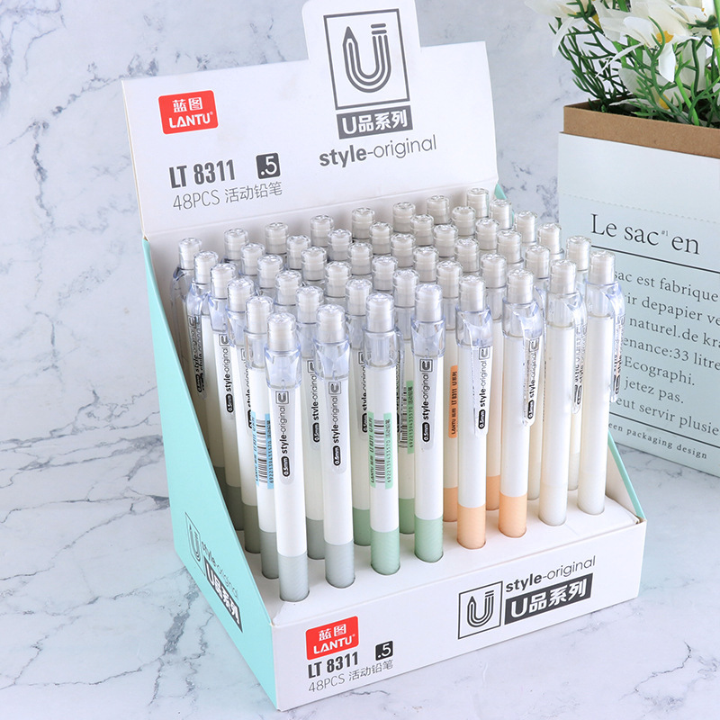 블루 프린트 간단한 패션 푸시 투 플레이 학생 활동 연필 지우개 자동 연필 학생 문구스토어 가기