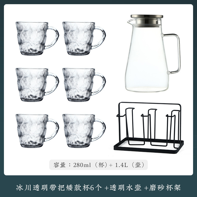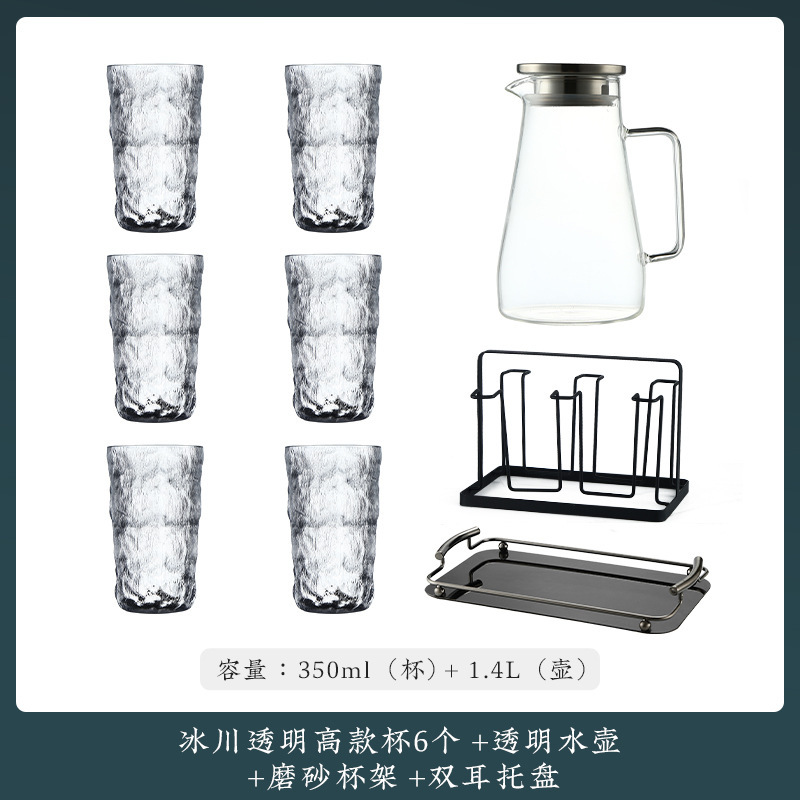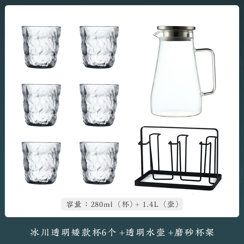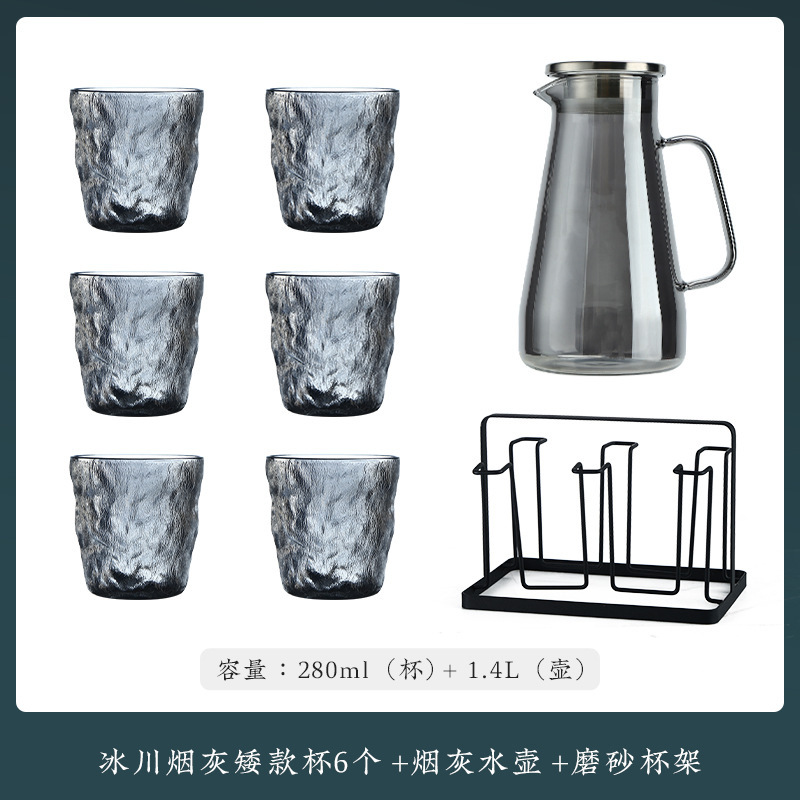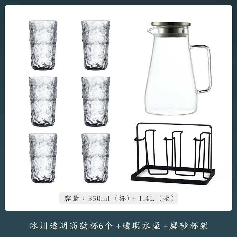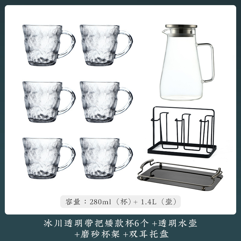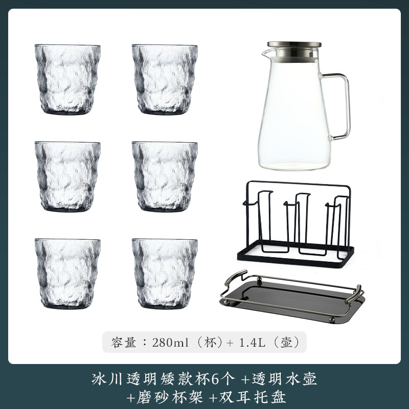 VHM7 도매 가벼운 고급 가정용 빙하 유리 물 컵 물 세트 차 세트 주전자 세트 거실 마시는 차 컵스토어 가기
