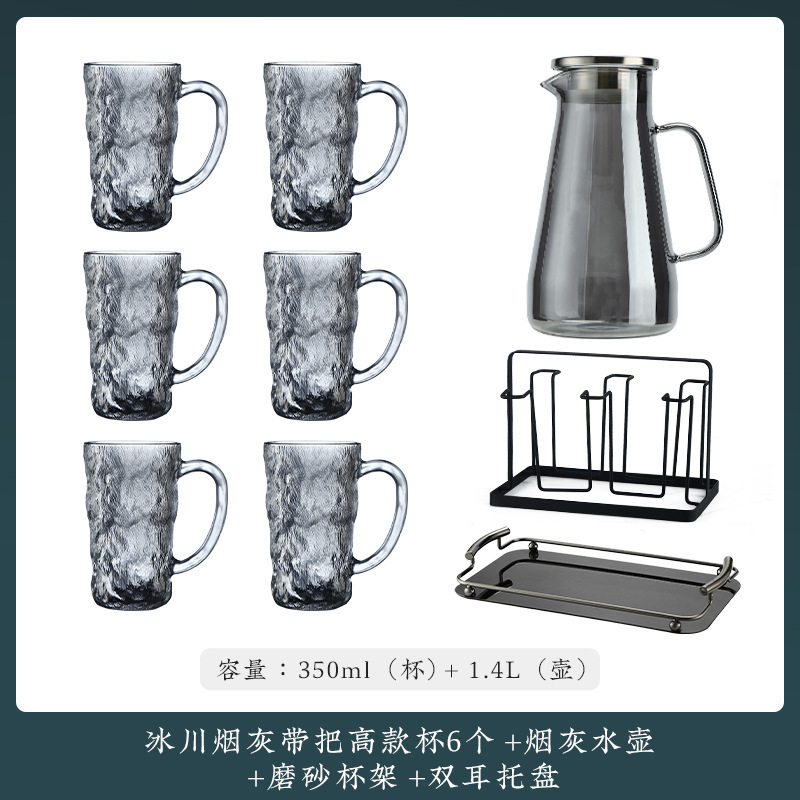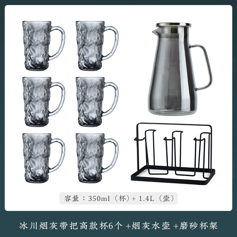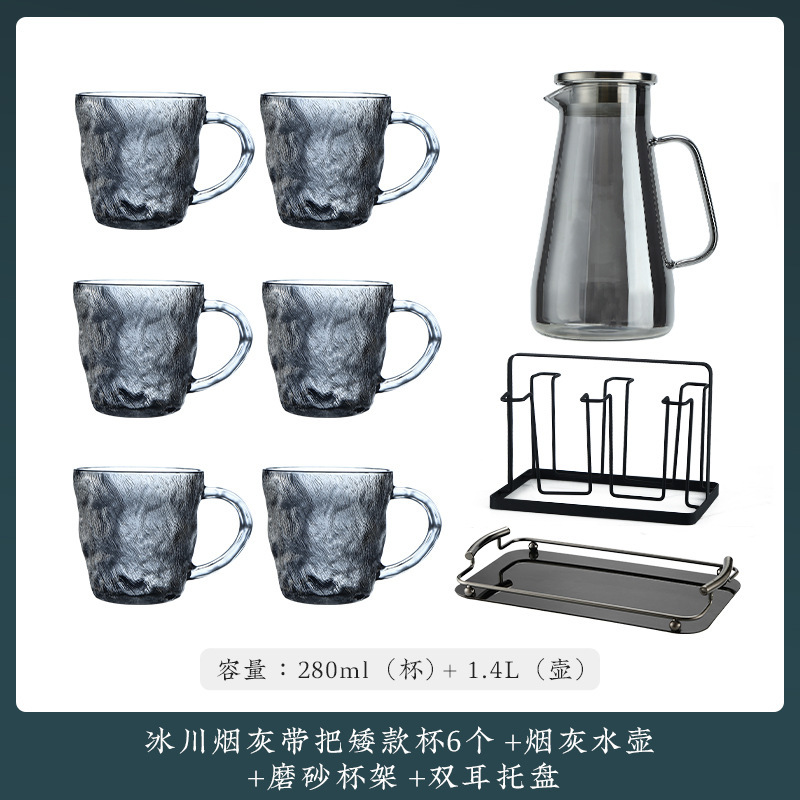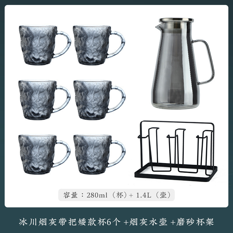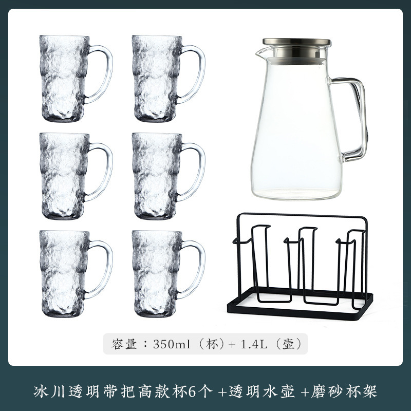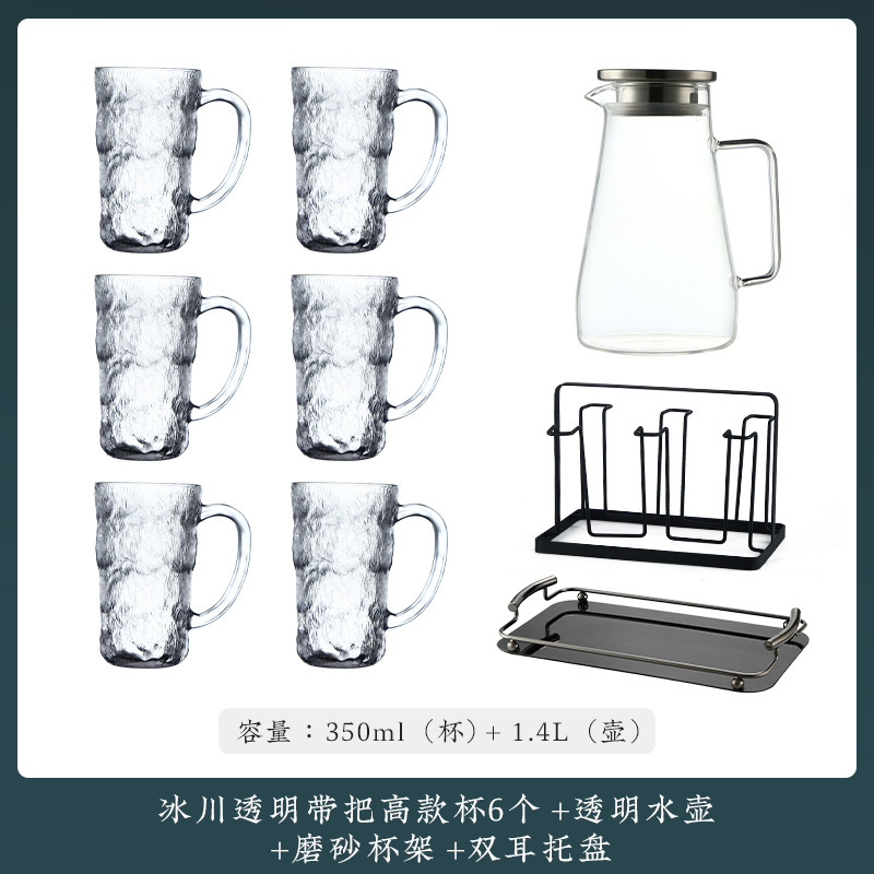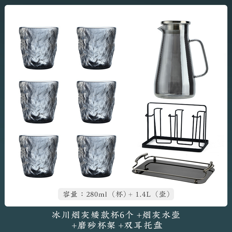 VHM7 도매 가벼운 고급 가정용 빙하 유리 물 컵 물 세트 차 세트 주전자 세트 거실 마시는 차 컵스토어 가기