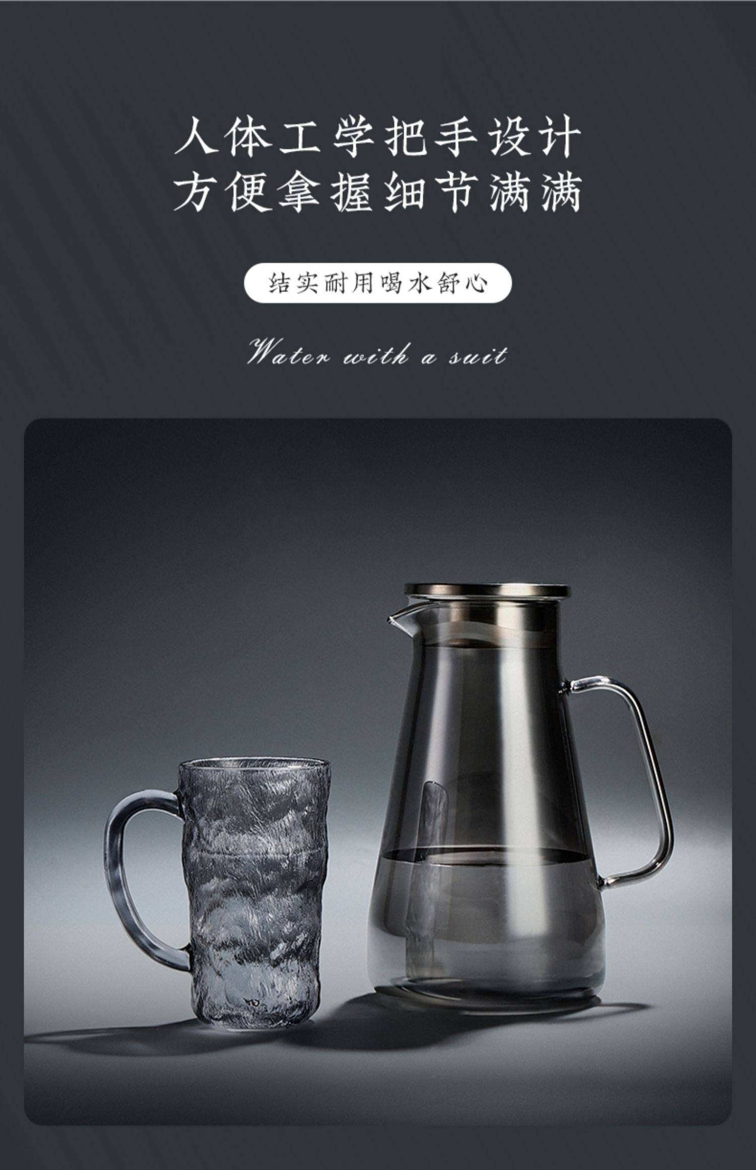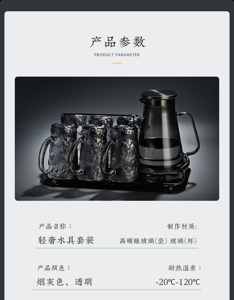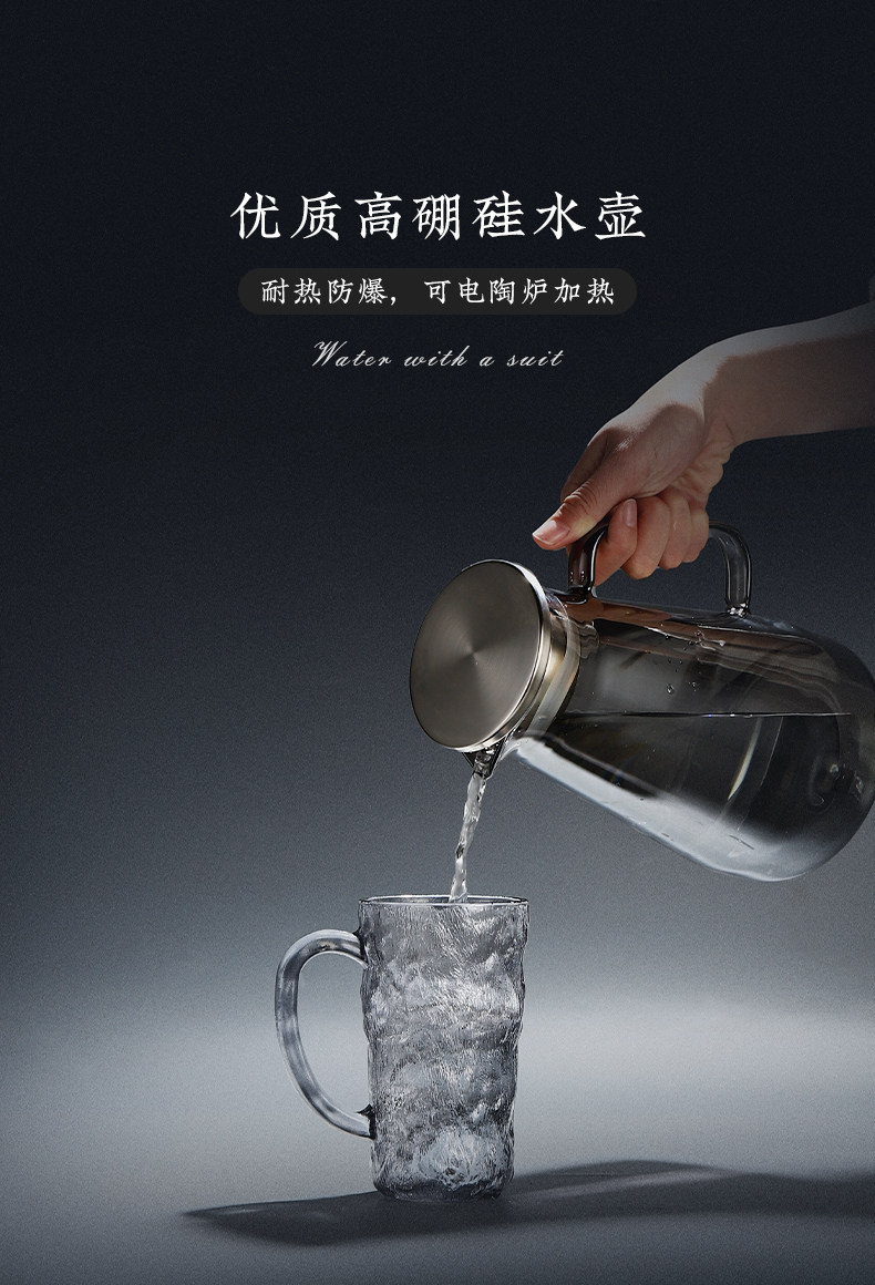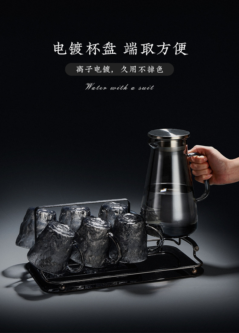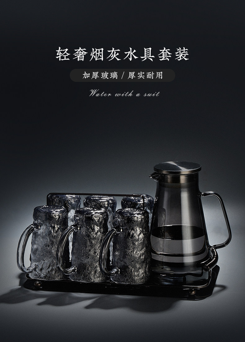 VHM7 도매 가벼운 고급 가정용 빙하 유리 물 컵 물 세트 차 세트 주전자 세트 거실 마시는 차 컵스토어 가기