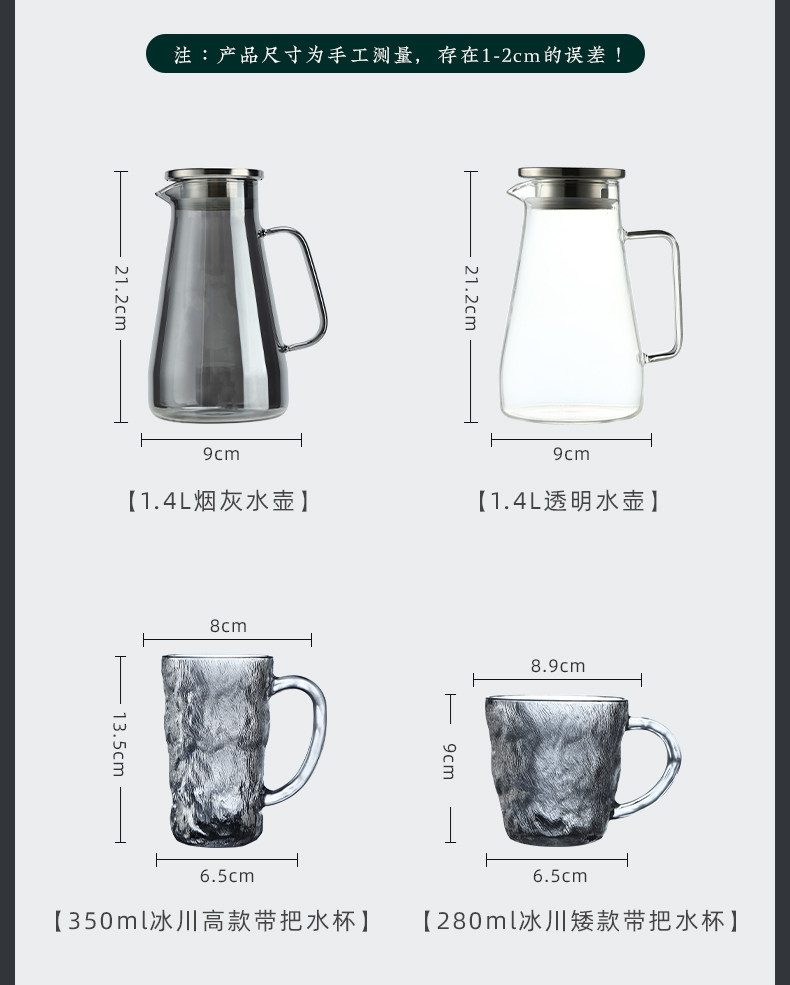 • 투명 빙하 톨 컵 [350ml] + 투명 빙하 주전자 + 반투명 컵 홀더 + 이중 귀 트레이