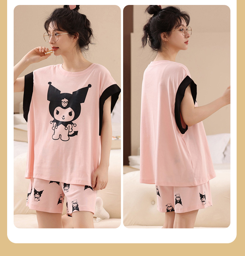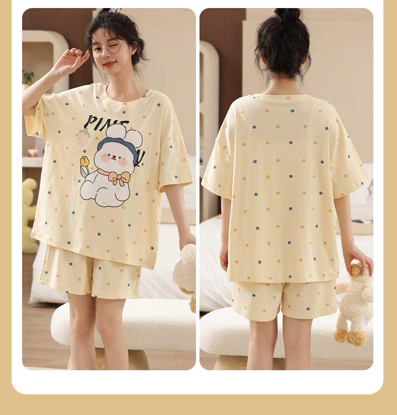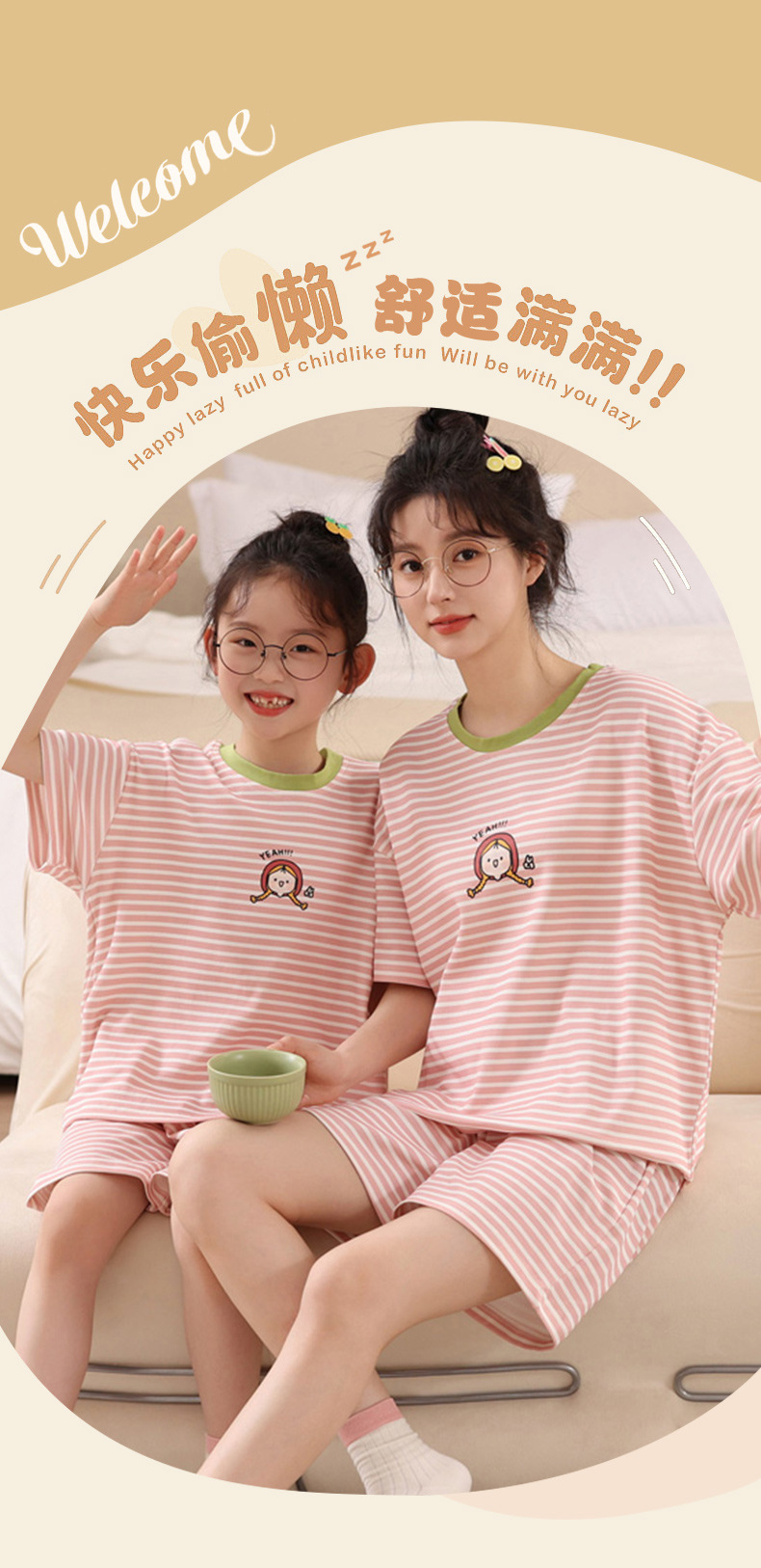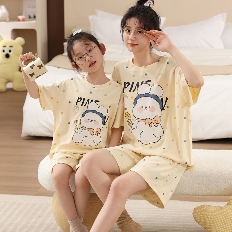 여아용 잠옷 여름면 반팔 반바지 공주 스타일 홈 옷 여아 부모-자식 통기성 에어컨 옷스토어 가기