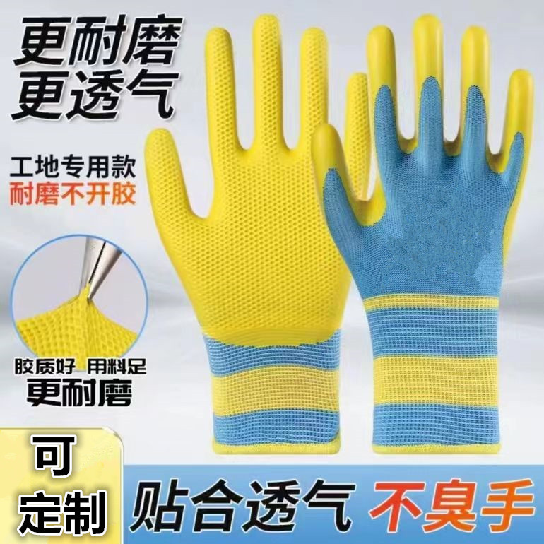 산업 건설을위한 우수한 통기성 장갑 노란색 라텍스 돋을새김없는 장갑스토어 가기