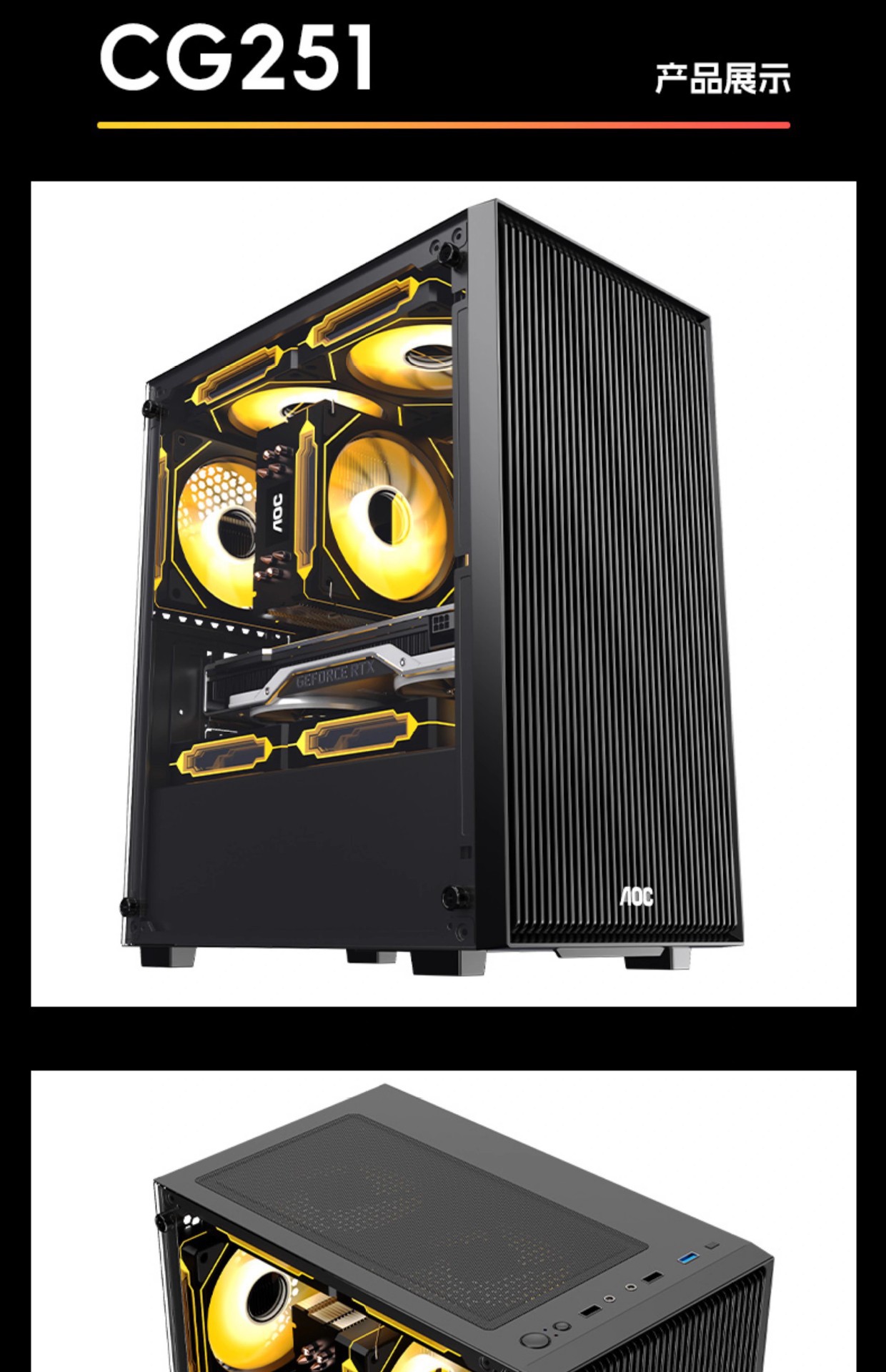 AOC 컴퓨터 섀시 데스크탑 CG251 게임 사무실 음소거 방진 matx 측을 통해 itx 메인 섀시 diy 소형