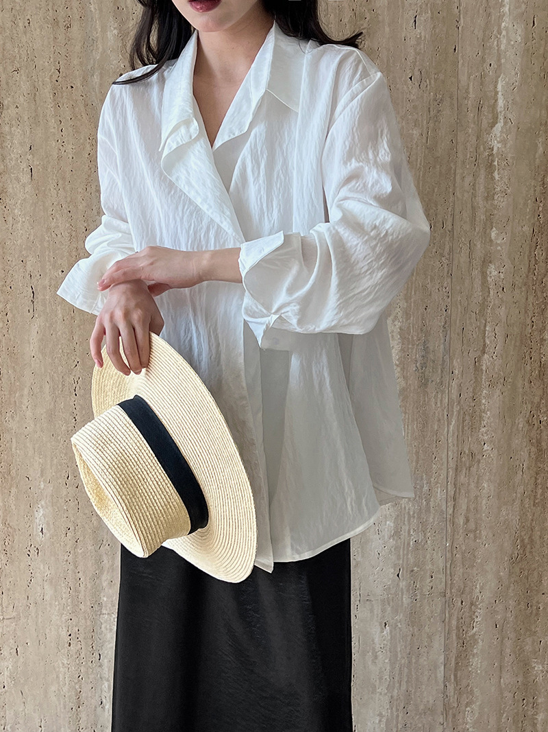 룩시 한국 스타일 마이크로 주름 질감 디자인 셔츠 여성의 2025 봄 새로운 우아한 긴팔 탑 7090스토어 가기