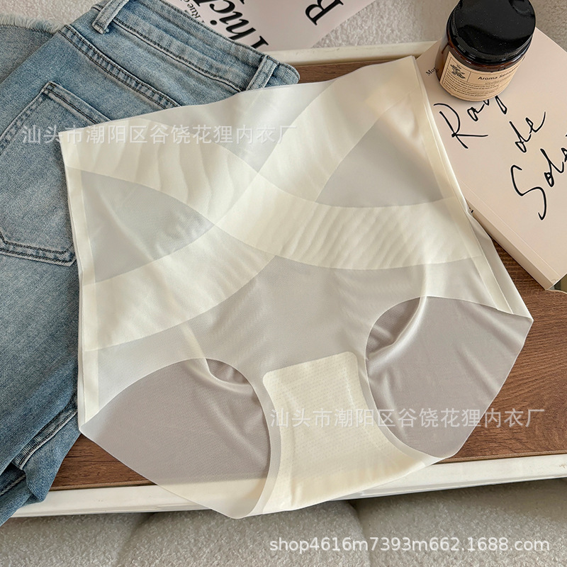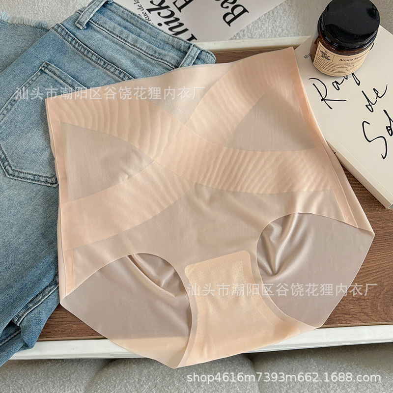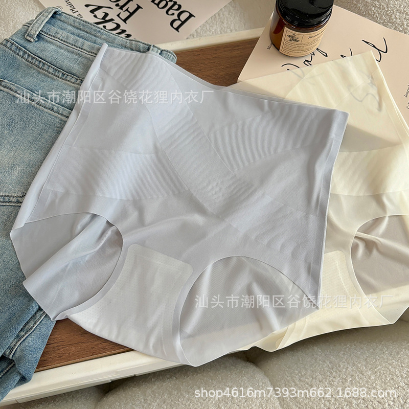 초박형 아이스 실크 높은 허리 속옷 여성 여름 추적없는 엉덩이 모양 작은 배 산후 복부 엉덩이 리프팅 브리프스토어 가기