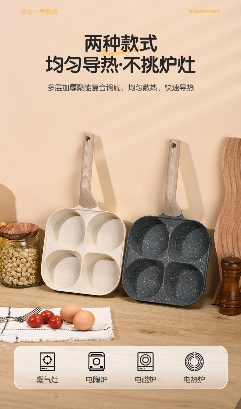크고 깊어진 4 홀 튀긴 계란 팬 마이판 돌 붙지 않는 팬 계란 함부르크 계란 만두 팬 조식 팬스토어 가기