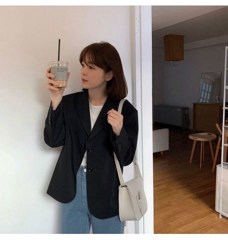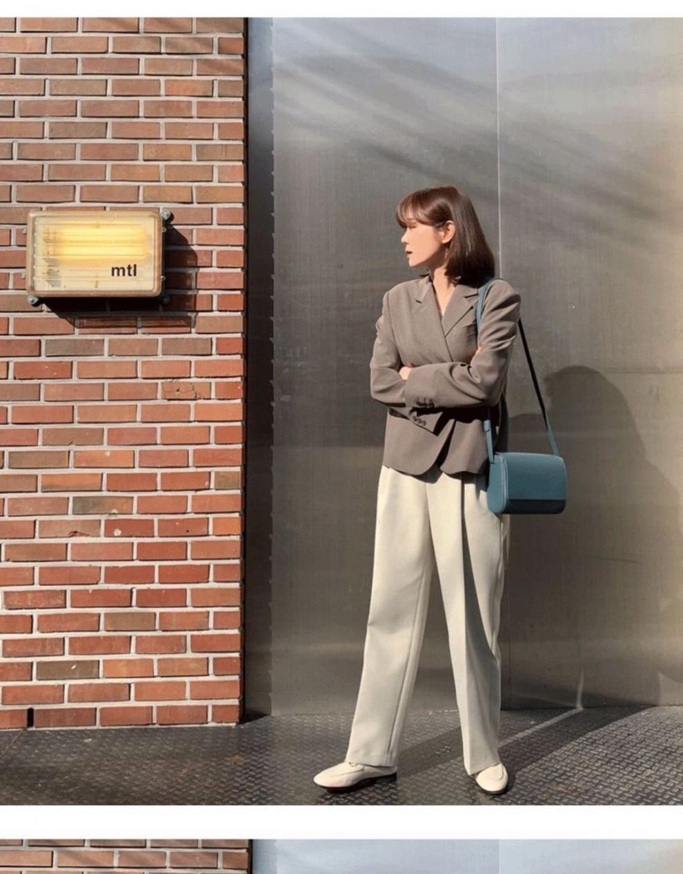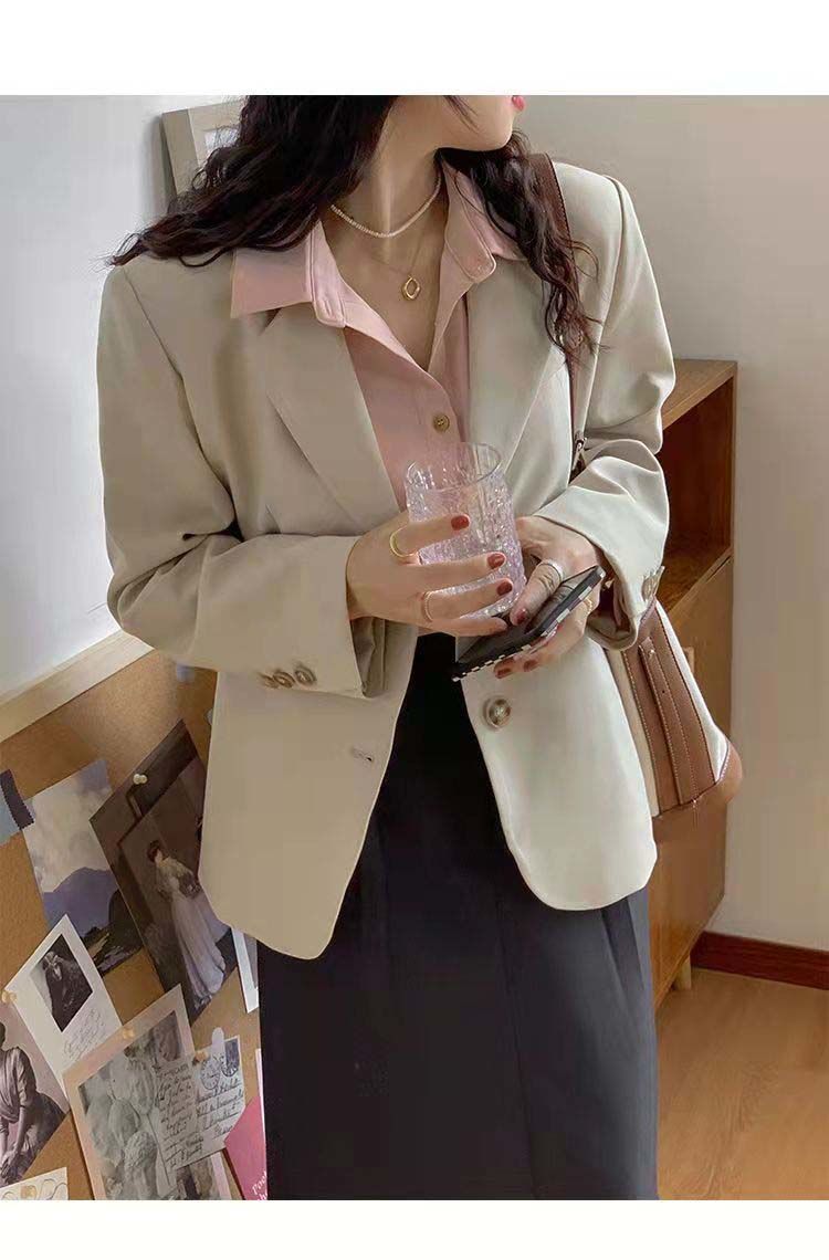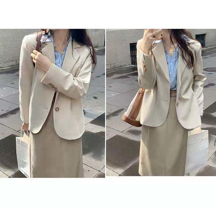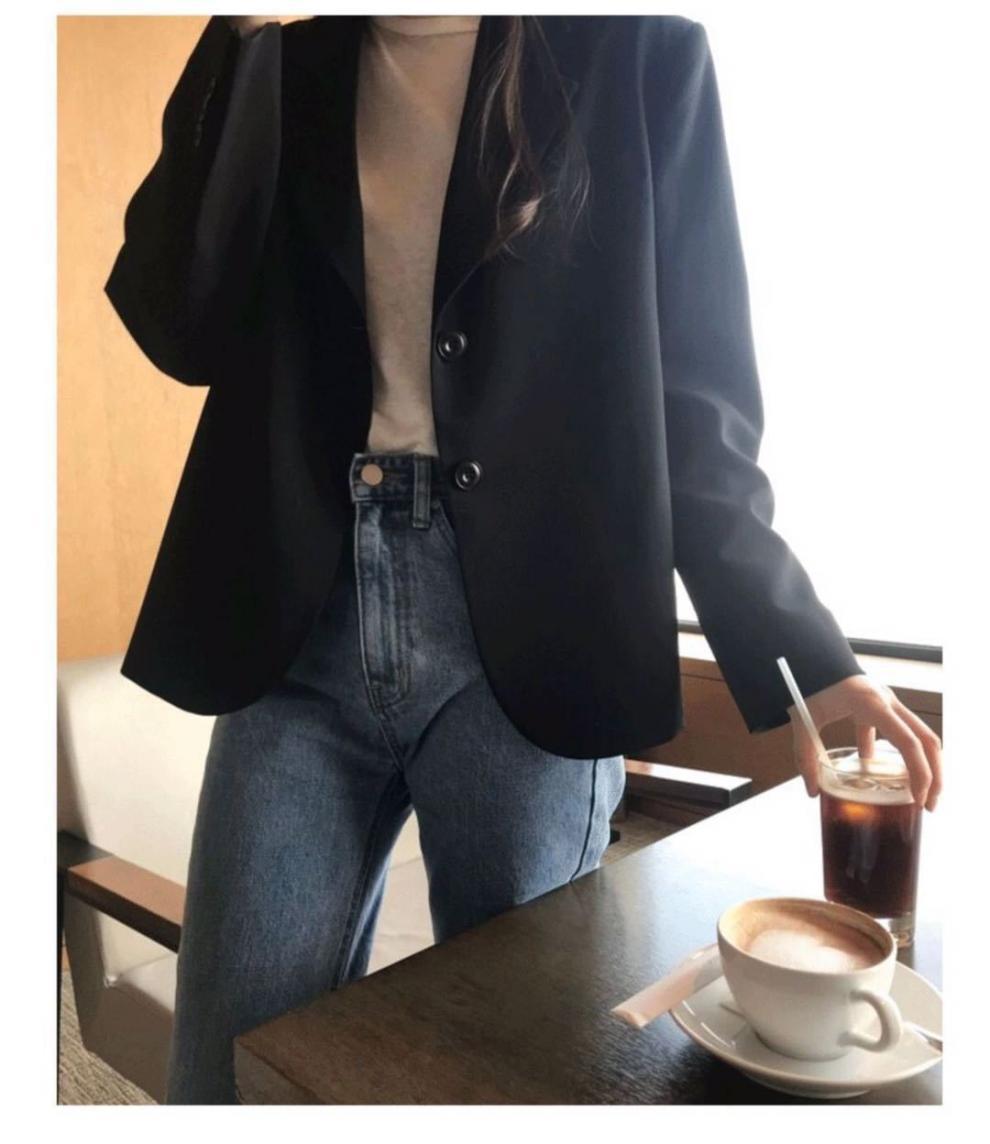 2024 봄과 가을 작은 세트 재킷 여자 캐주얼 올 매치 영국 스타일 회색 짧은 세트 작은 탑스토어 가기