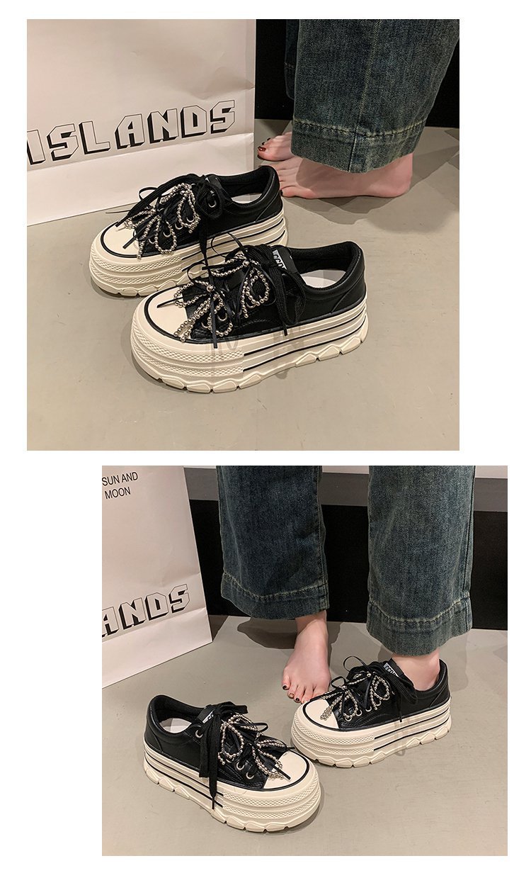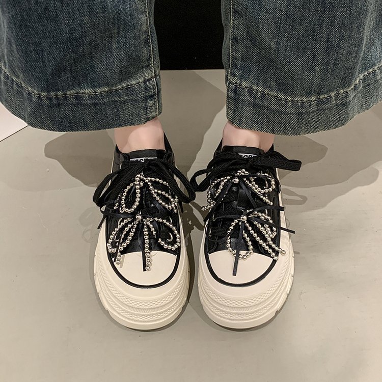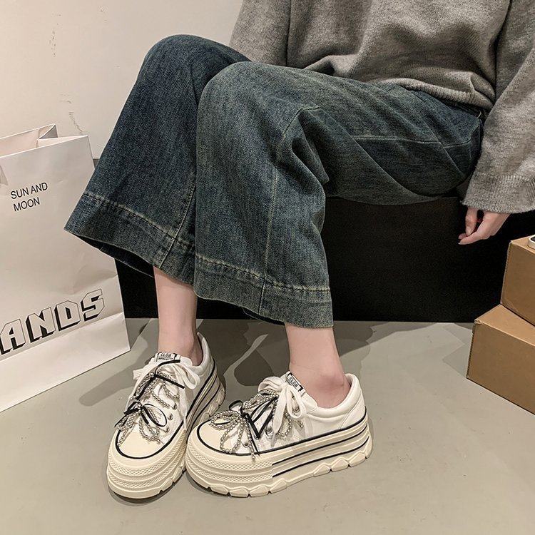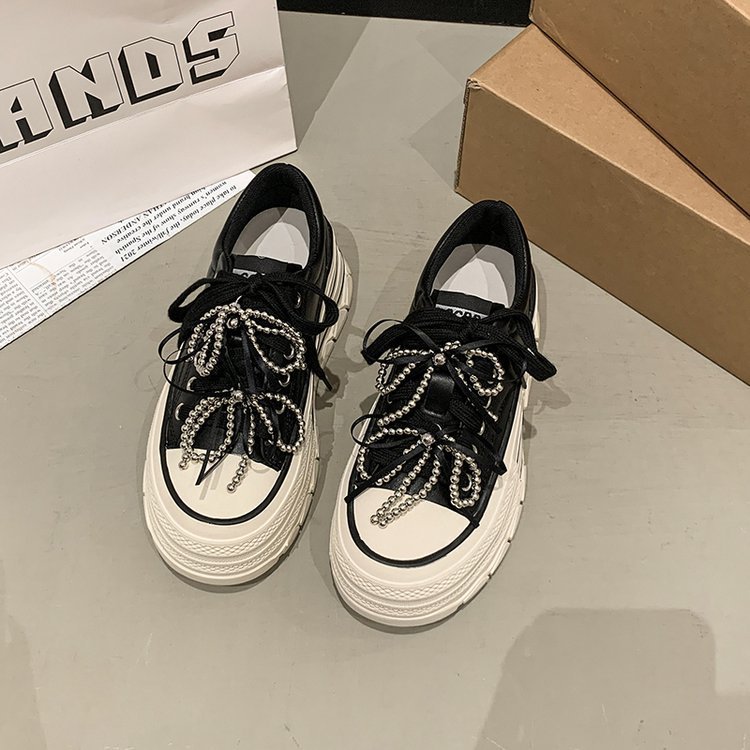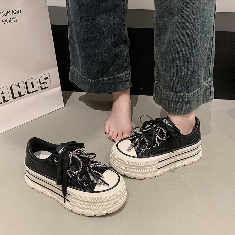 활 구슬 흰색 신발 여성 플랫폼 신발 2025 봄 새로운 스타일 작은 높이 신발 캐주얼 스케이트 신발스토어 가기