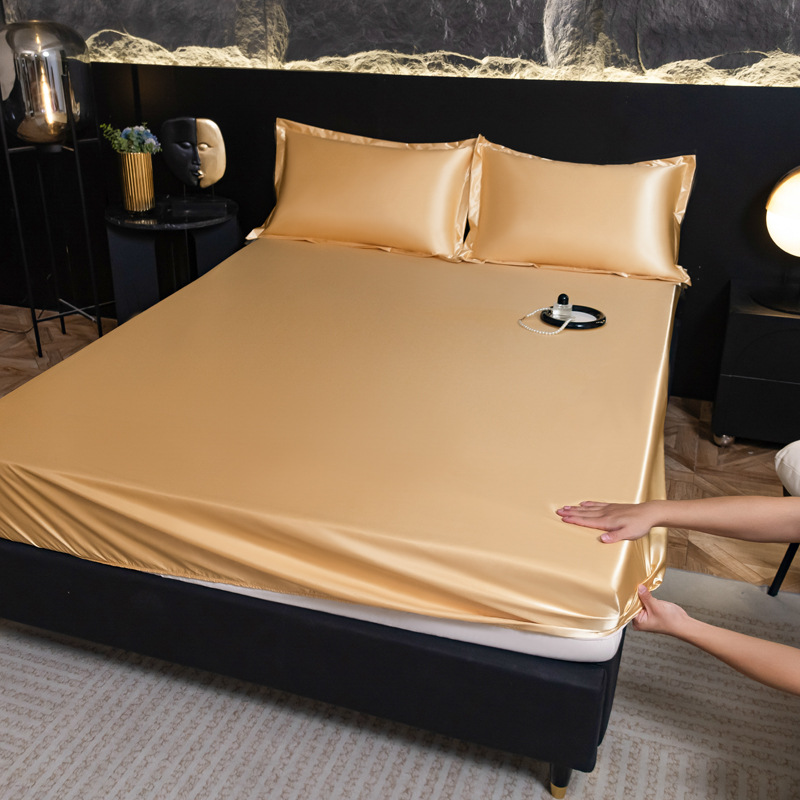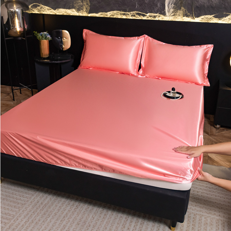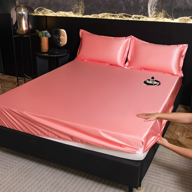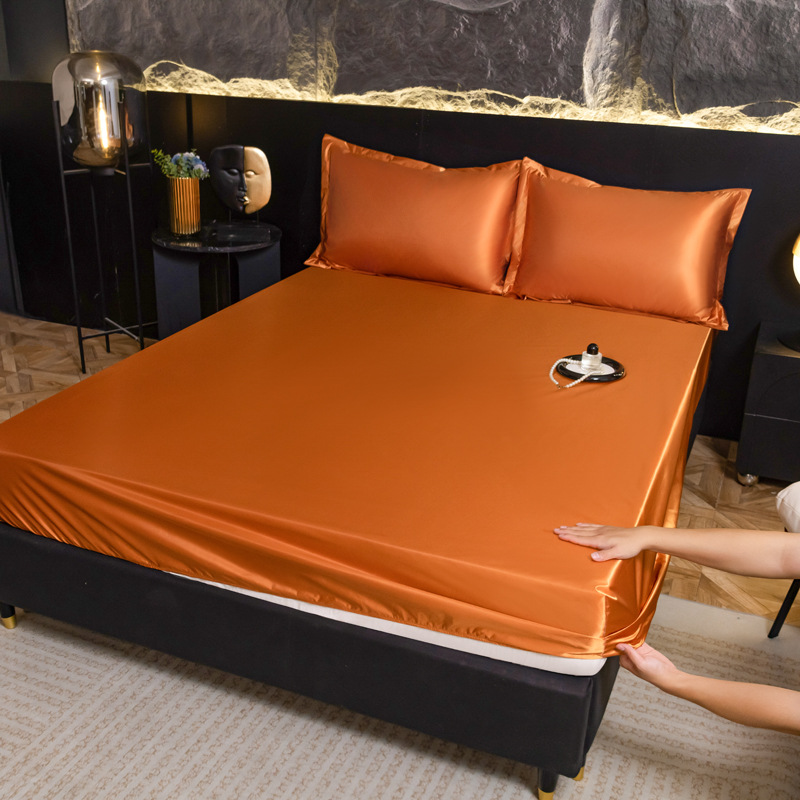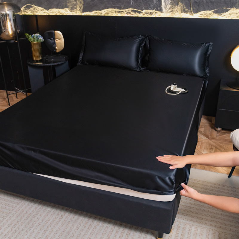 대외 무역 수출 국경 간 방수 아이스 실크 침대 모자 새틴 아이스 실크 모든 것을 포함하는 매트리스 커버 단색 침대보 아마존