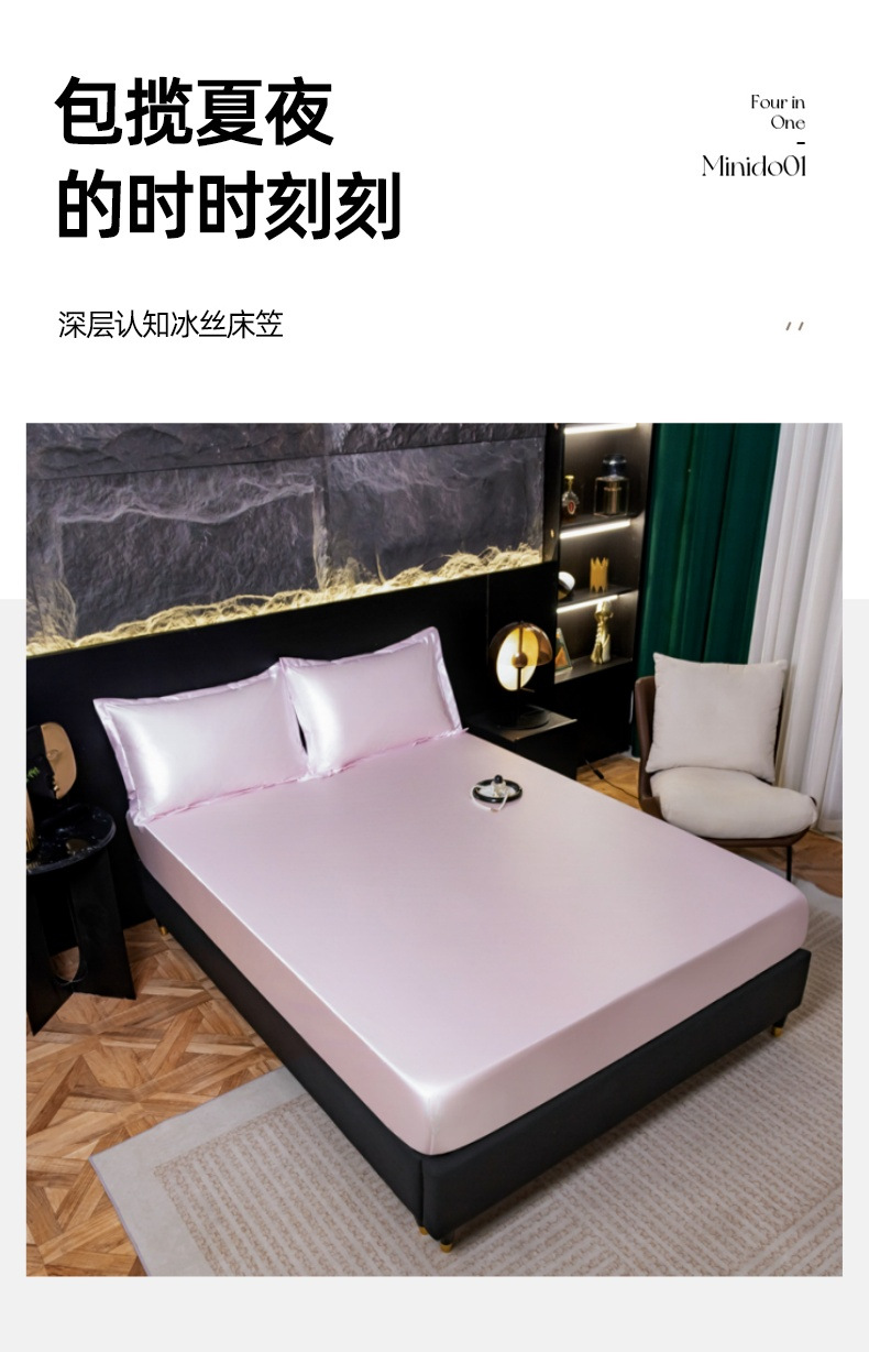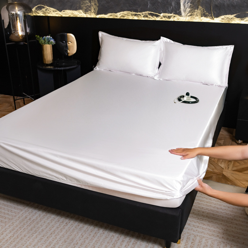 대외 무역 수출 국경 간 방수 아이스 실크 침대 모자 새틴 아이스 실크 모든 것을 포함하는 매트리스 커버 단색 침대보 아마존스토어 가기