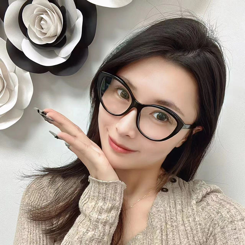 신상 샹지아 무테 안경테 ch3464 캣아이 레트로 플레이트 패션 다용도 평면 안경 블루라이트 차단 가능