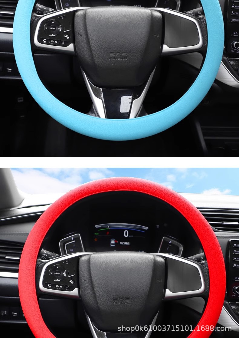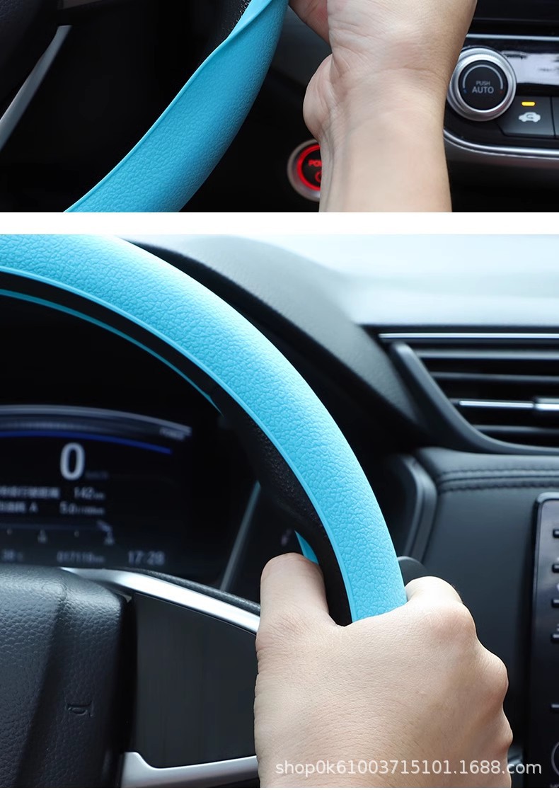 자동차 사계절 유니버설 실리콘 스포츠 스티어링 휠 커버 남성과 여성의 자동차 미끄럼 맛없는 실리콘 핸들 커버스토어 가기