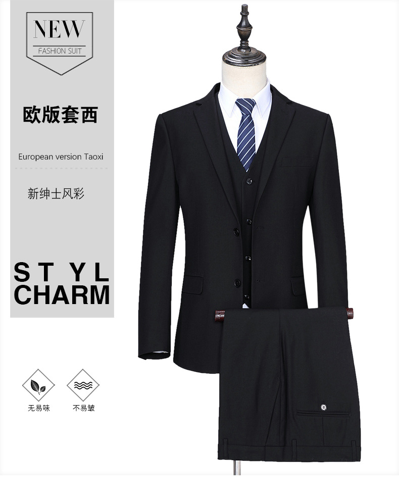 고급 남성 울 세트 세트 봄과 가을 비즈니스 전문 원피스 웨딩 신랑 작업 화이트 칼라 투피스 세트스토어 가기