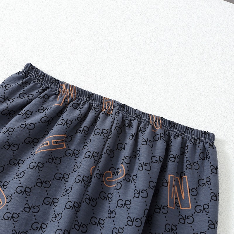 306-3 남자 잠옷 여름 면 반팔 바지 3 피스 세트 얇은 캐주얼 의상 반바지 홈 옷