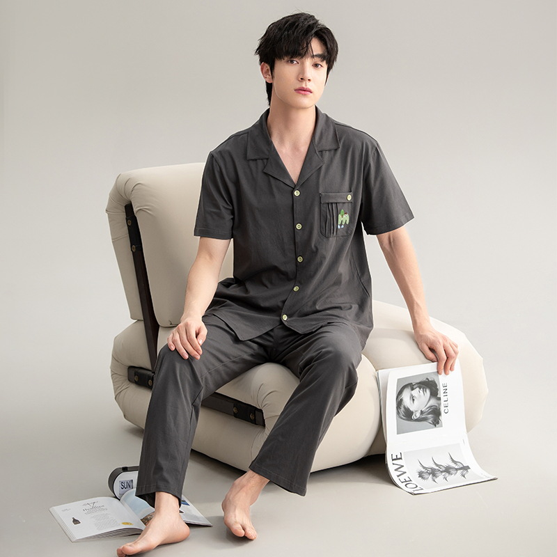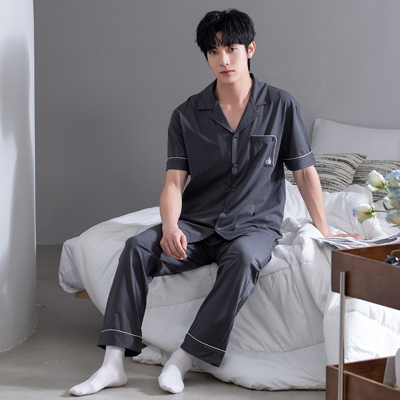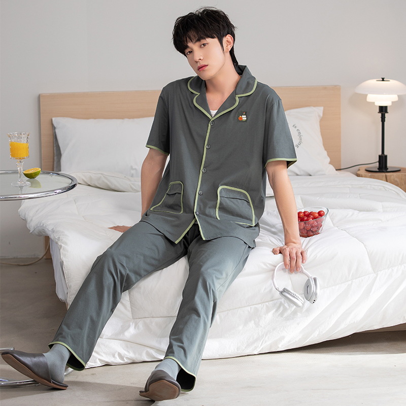 클래스 A 항균 잠옷 남성용 여름 순면 반팔 바지 카디건 남성용 캐주얼 퓨어 코튼 아웃웨어 홈 의류스토어 가기