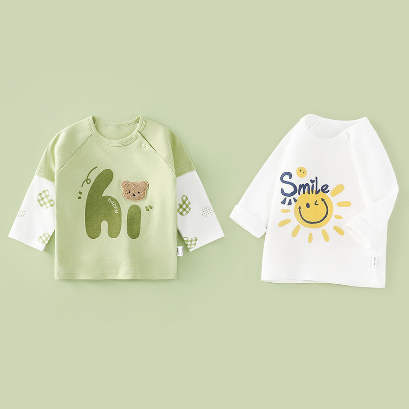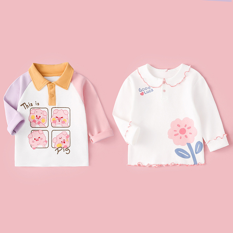 2 팩 1-5 세 어린이 티셔츠 봄과 가을 아기 긴 소매베이스 셔츠 소년과 소녀 탑 코튼 옷 파자마스토어 가기