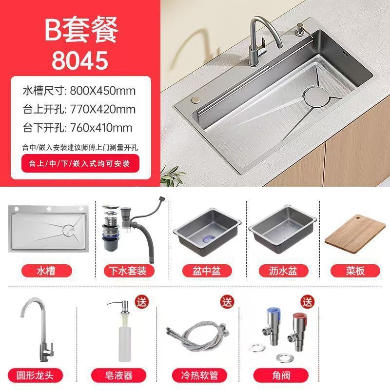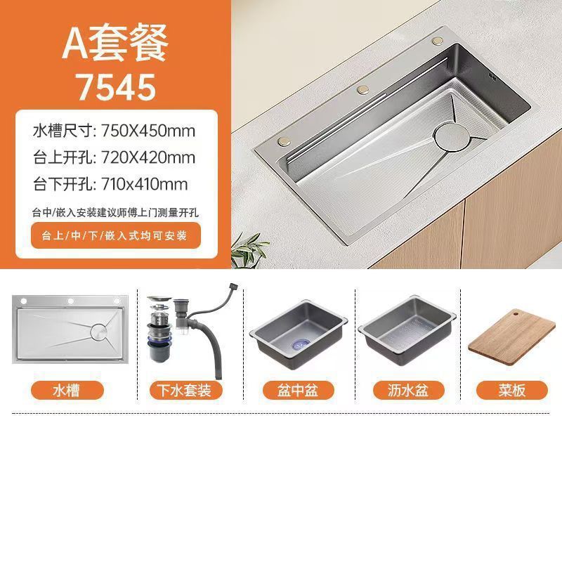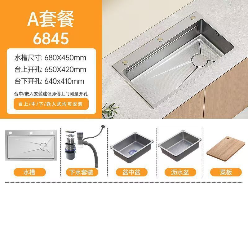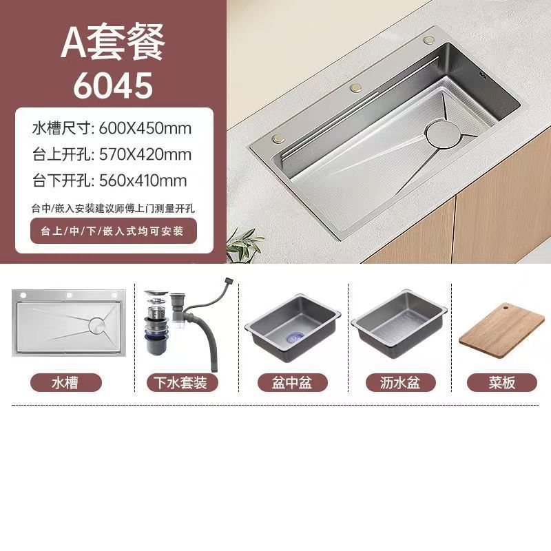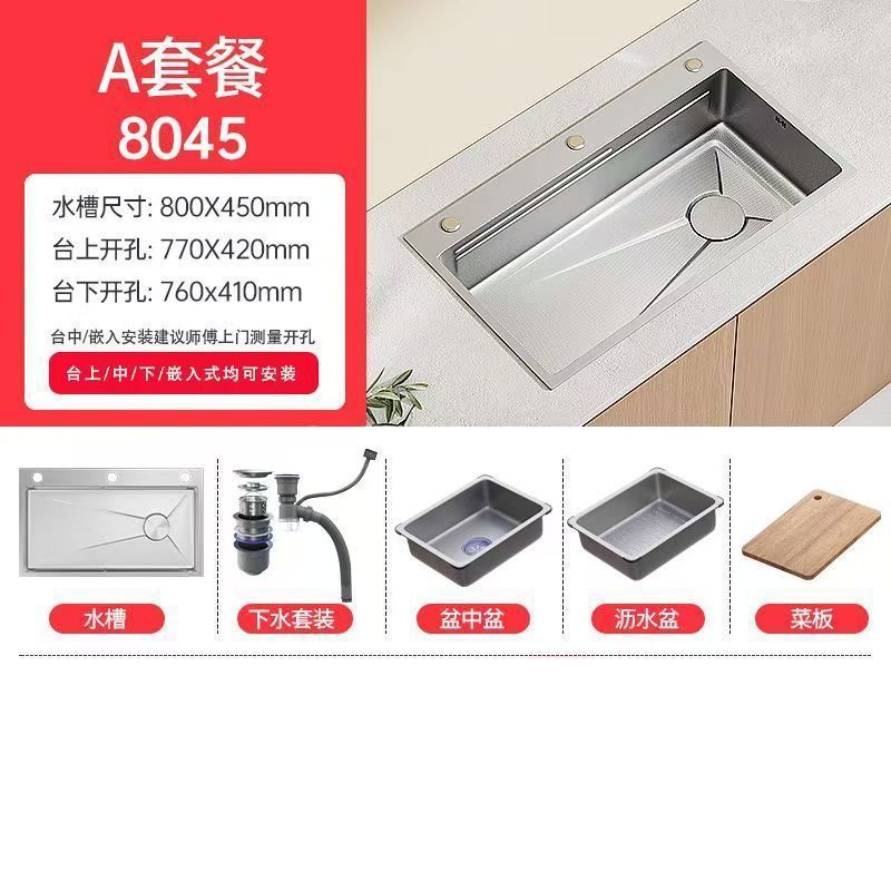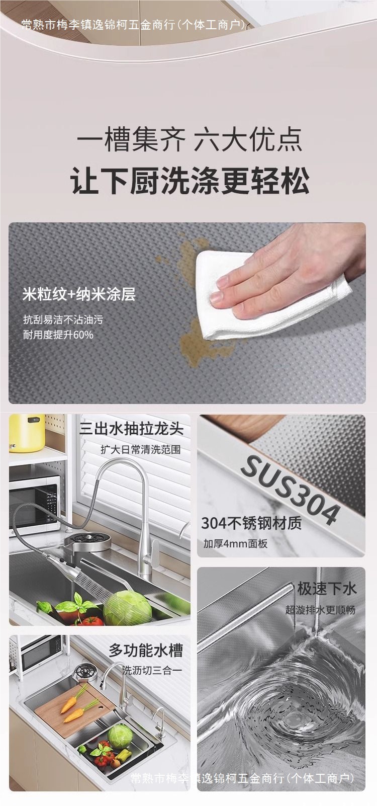 주방 싱크 304 단일 그루브 쌀 곡물 양각 가정 야채 세척 나노 그릇 두꺼운 스테인레스 스틸 싱크