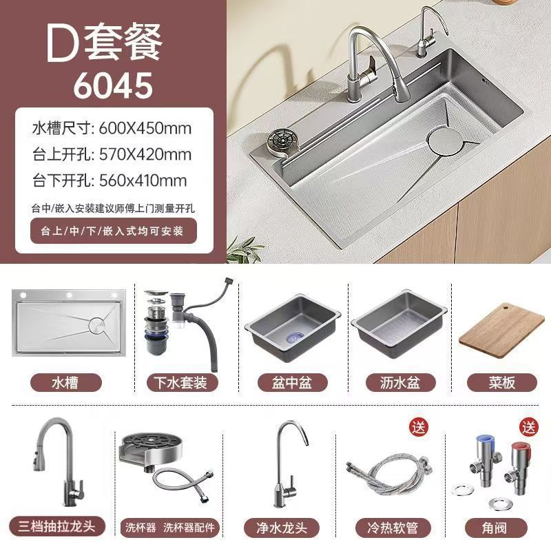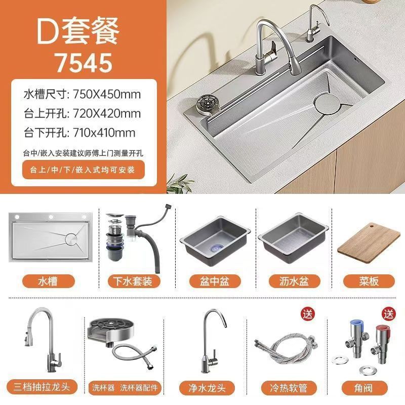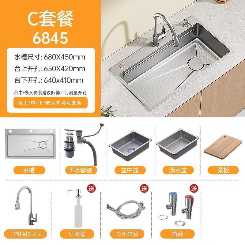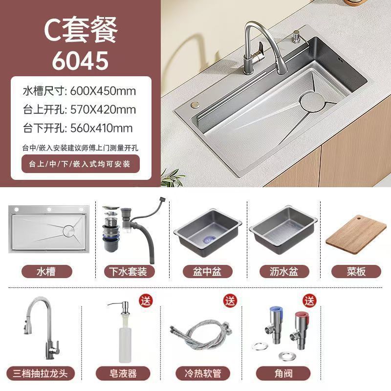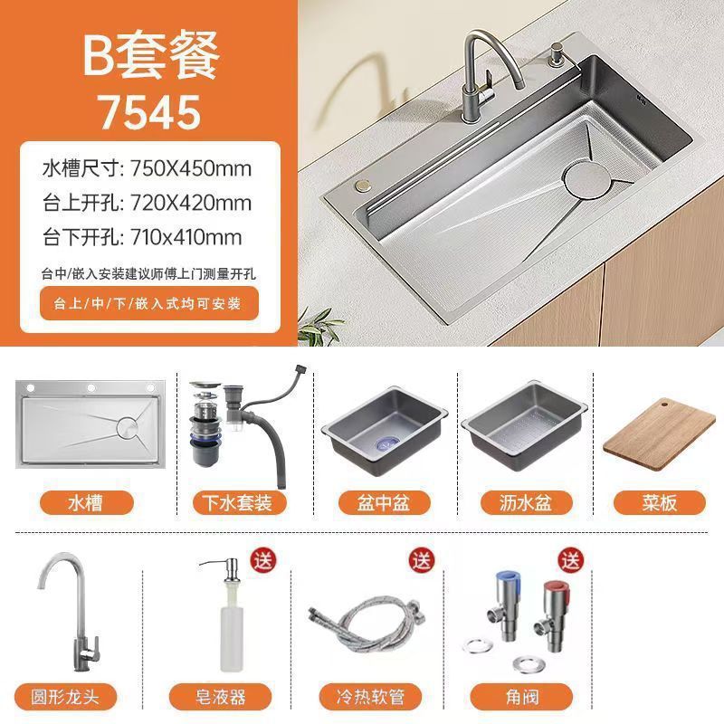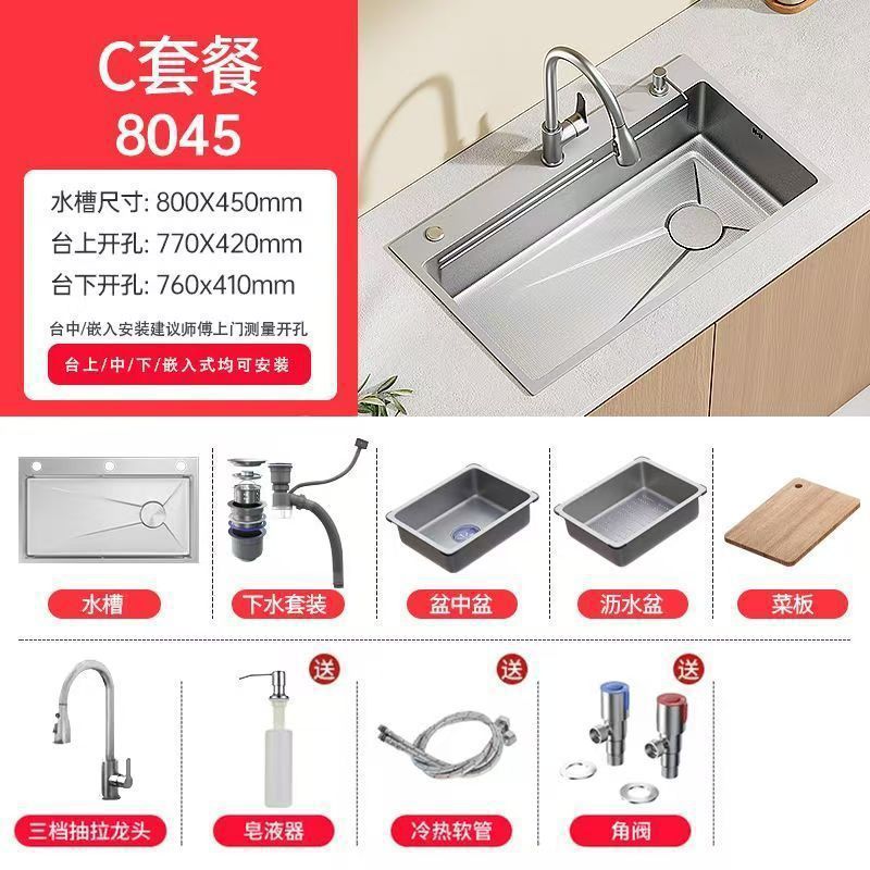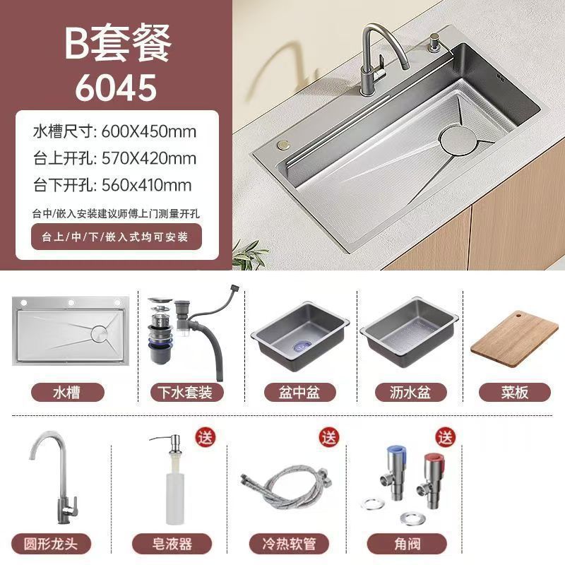 주방 싱크 304 단일 그루브 쌀 곡물 양각 가정 야채 세척 나노 그릇 두꺼운 스테인레스 스틸 싱크