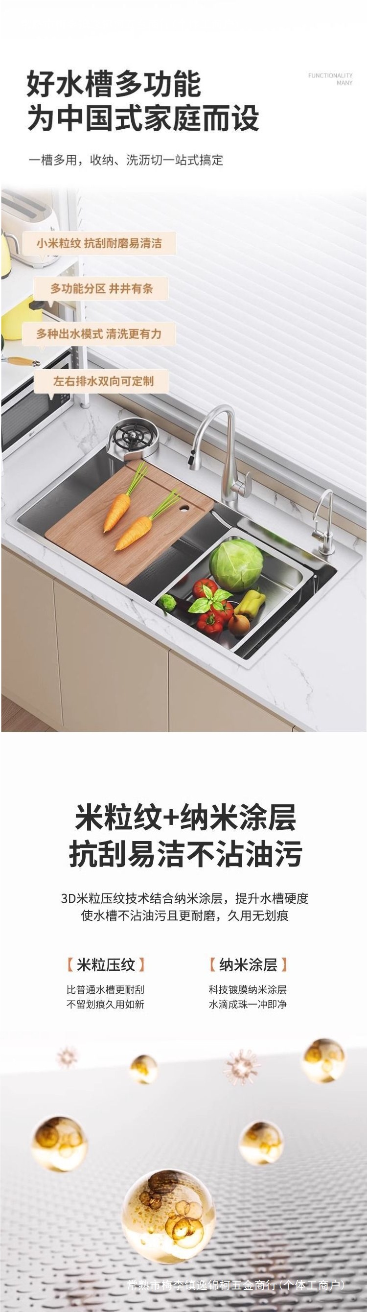 주방 싱크 304 단일 그루브 쌀 곡물 양각 가정 야채 세척 나노 그릇 두꺼운 스테인레스 스틸 싱크스토어 가기
