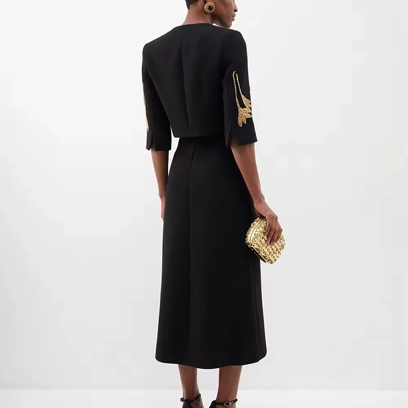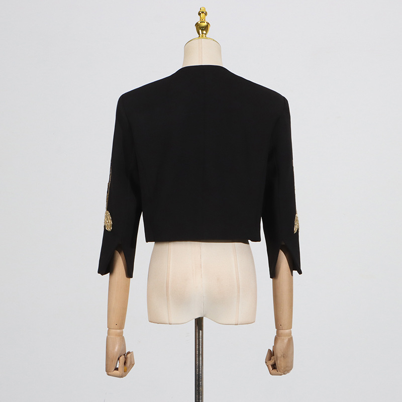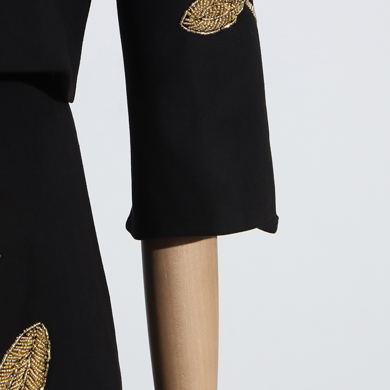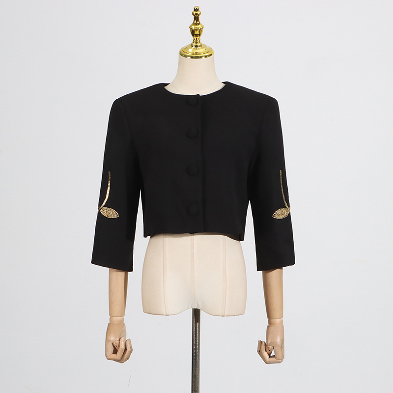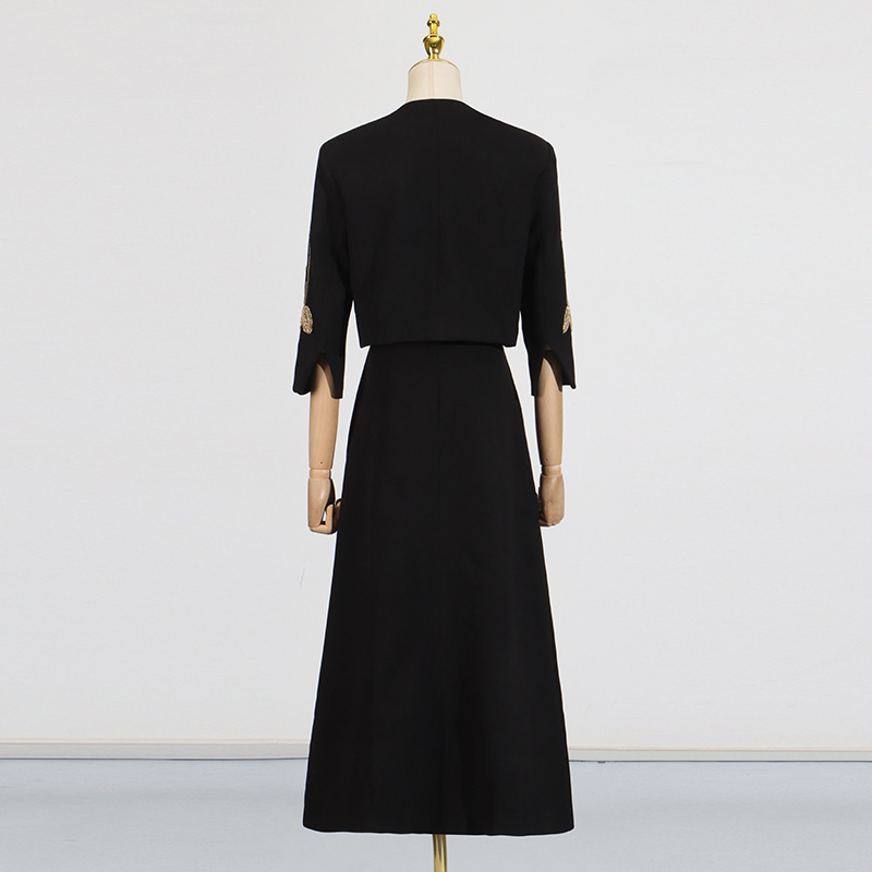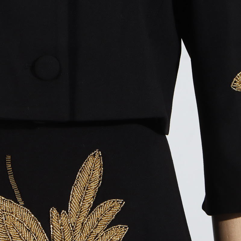 2025 새로운 유럽과 미국의 중공업 꽃 구슬 디자인 짧은 최고 코트 높은 허리 A 라인 스커트 여성 세트스토어 가기
